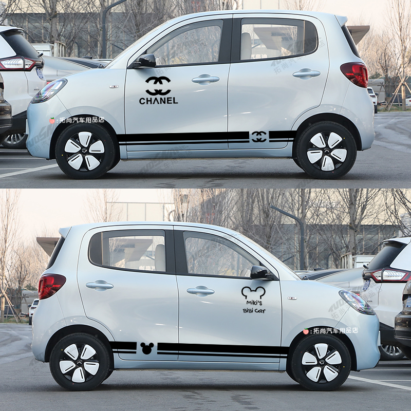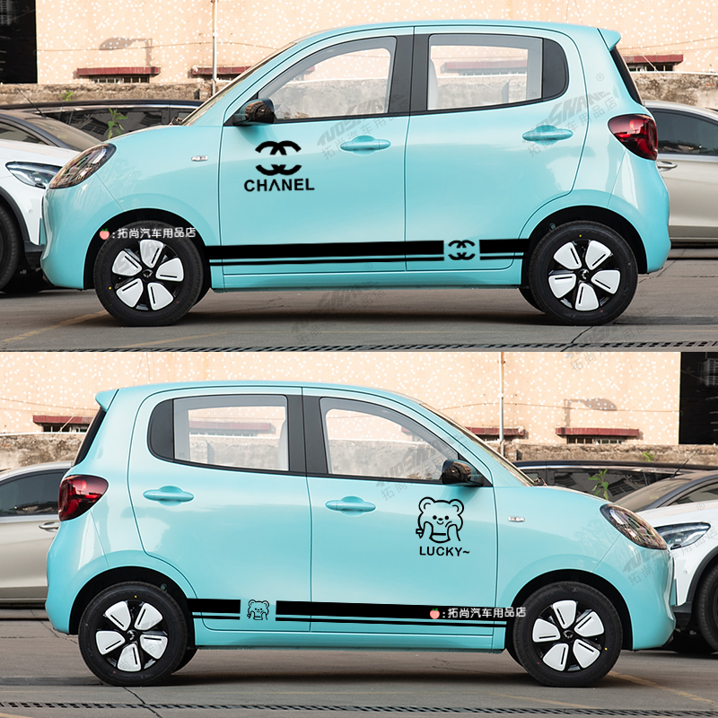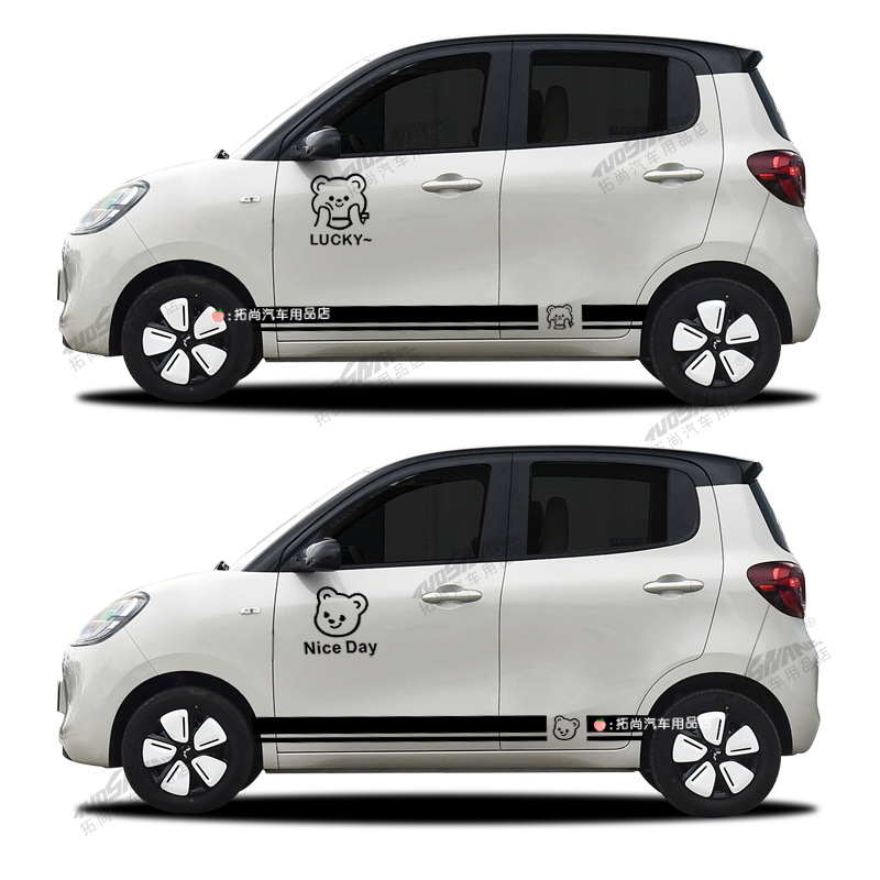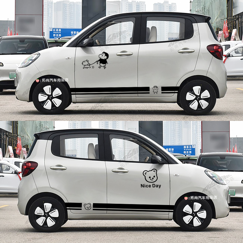适用五菱宏光MINI25款四门车身贴纸小熊小新小白可爱卡通侧裙拉花