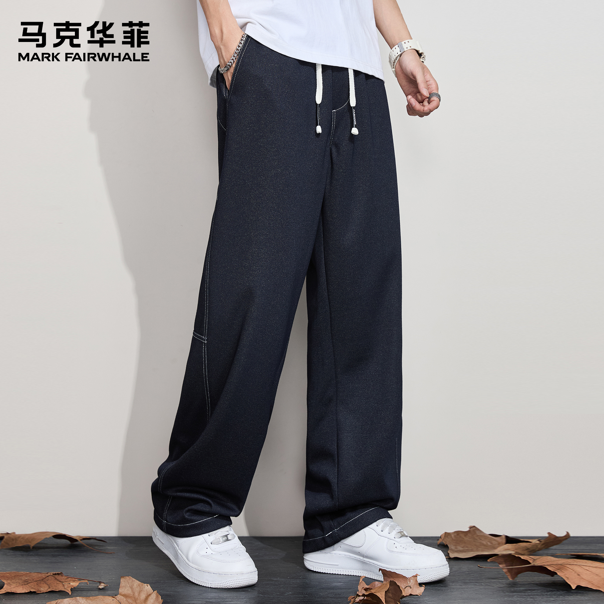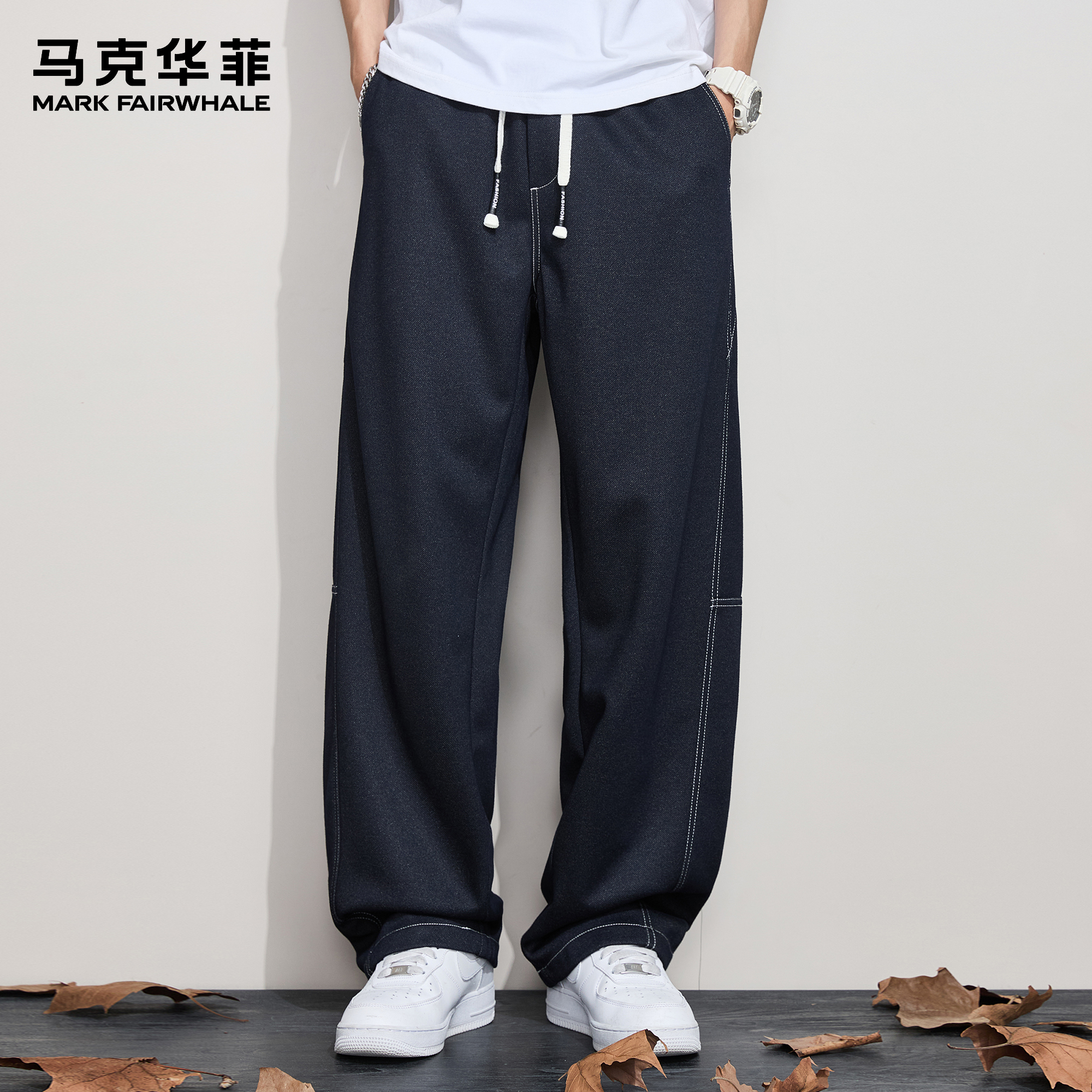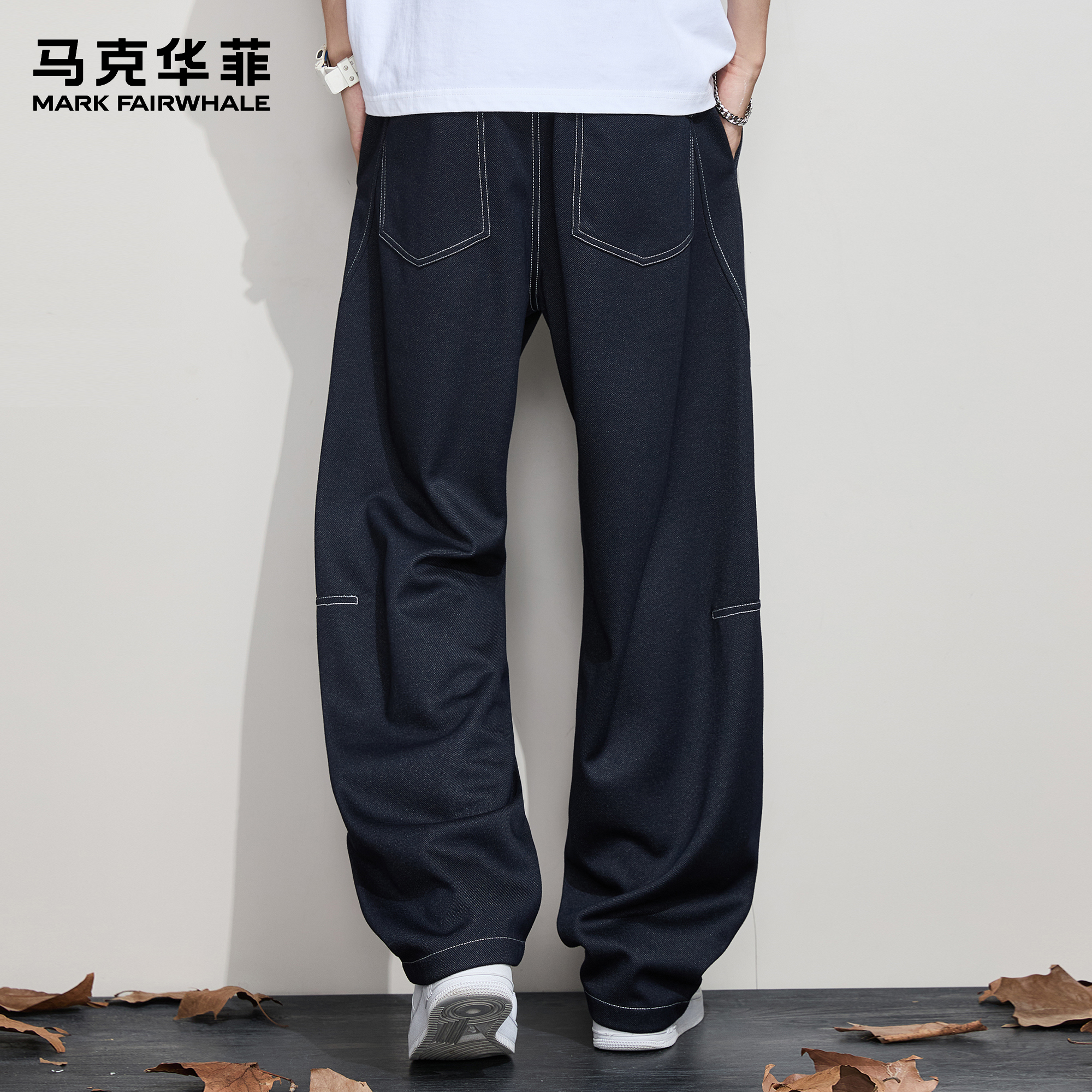 马克华菲牛仔裤男士秋冬新款潮牌美式重磅加厚解构复古宽松弯刀裤