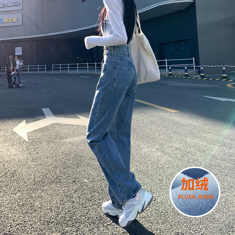 高腰宽松阔腿裤牛仔裤女秋季秋款2025年新款直筒裤女士裤子加绒