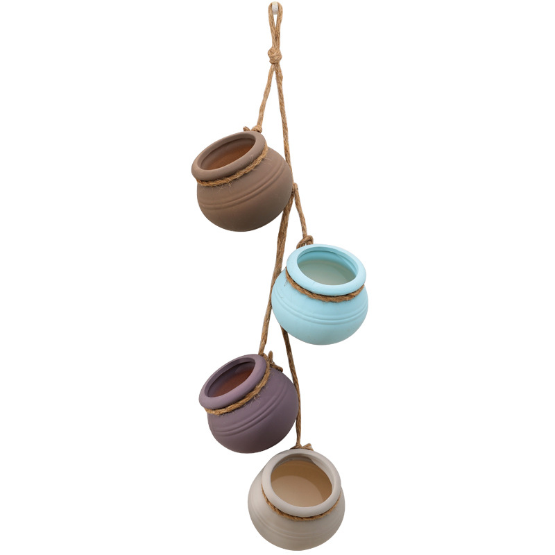 陶土麻绳垂吊墙壁吊盆陶瓷花盆壁挂悬挂创意四色花盆多肉植物盆栽