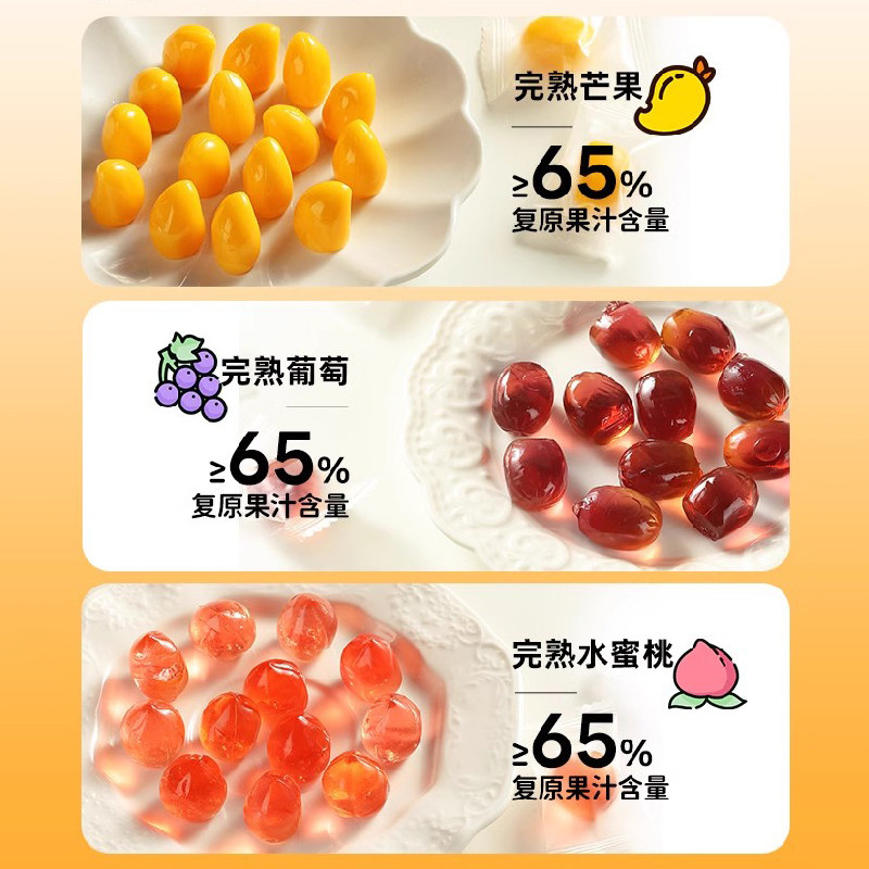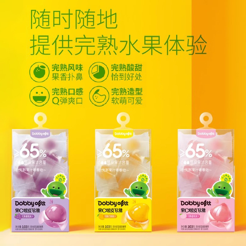 Dobby哆比果C啵皮完熟果汁软糖芒果葡萄水蜜桃剥皮软糖休闲零食