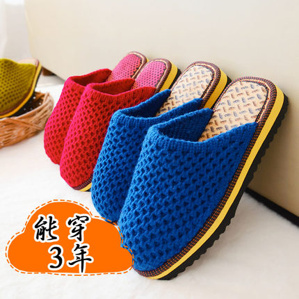 纯手工居家情侣拖鞋防滑耐磨男女款毛线编织拖鞋成品婚嫁鞋春秋季