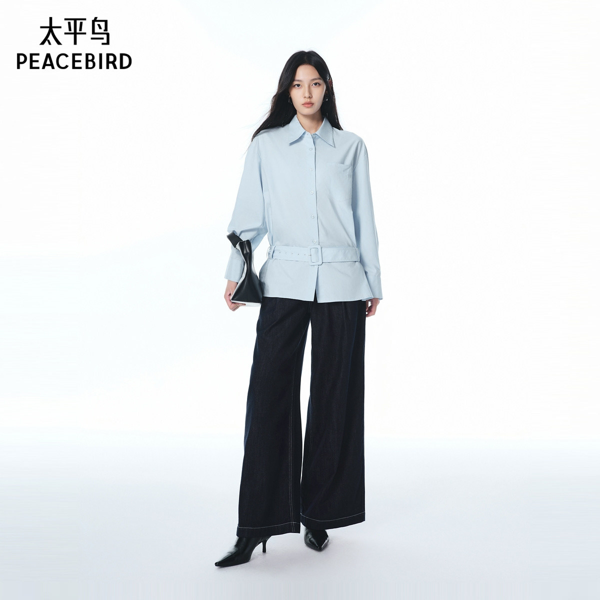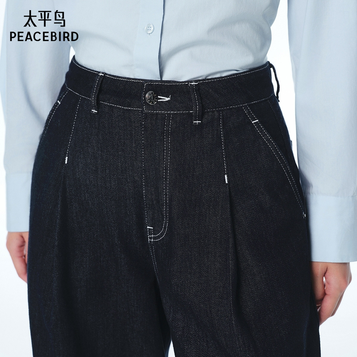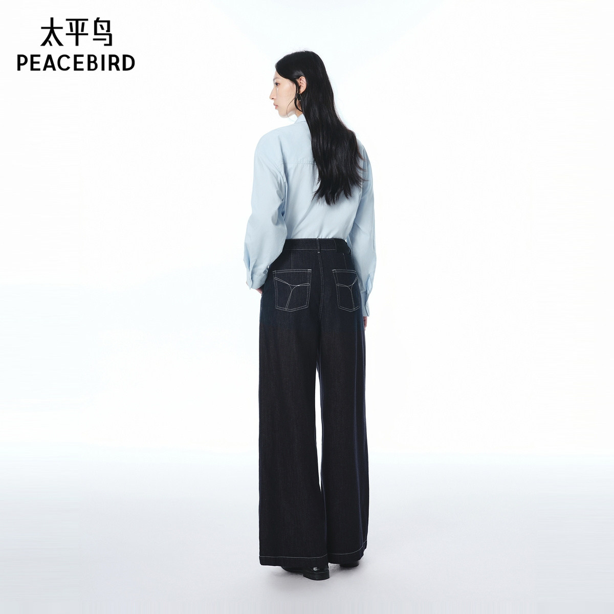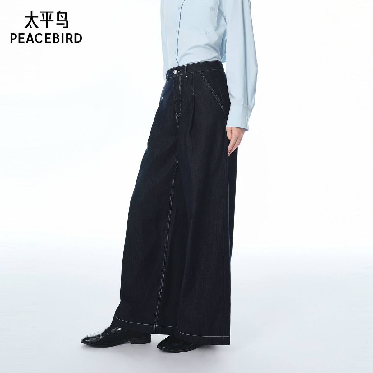 太平鸟商场同款高腰阔腿牛仔裤女