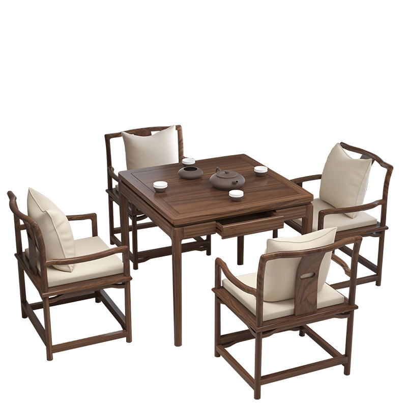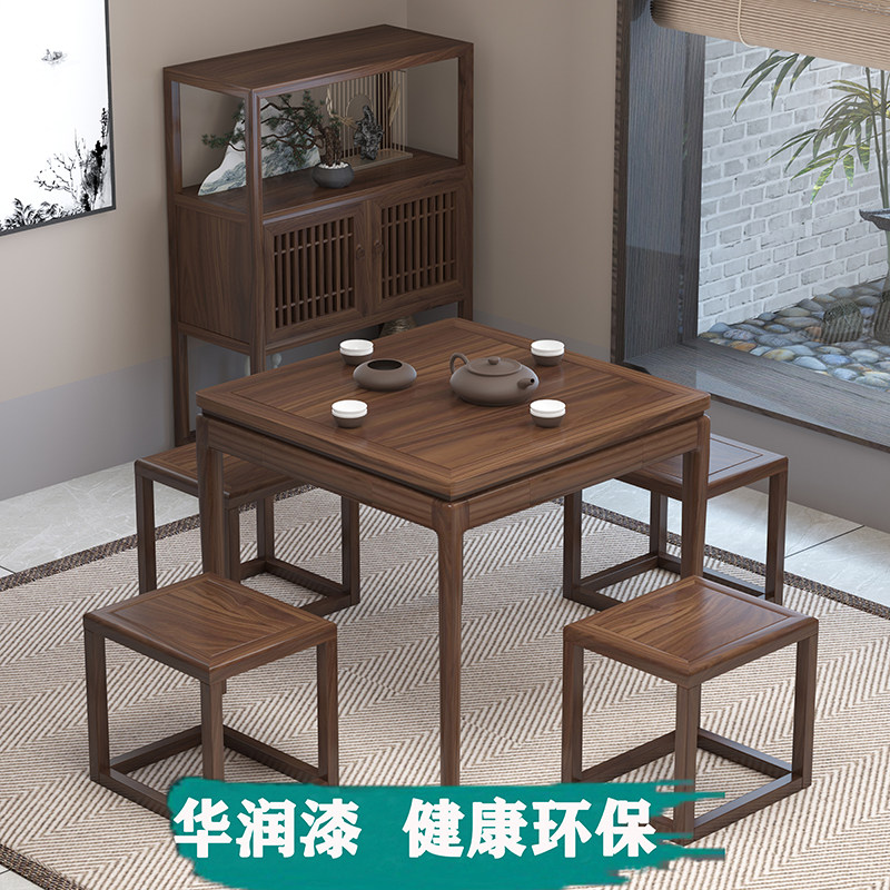 新中式老榆木实木八仙桌方桌正方形餐桌四方桌棋牌桌掼蛋桌椅组合