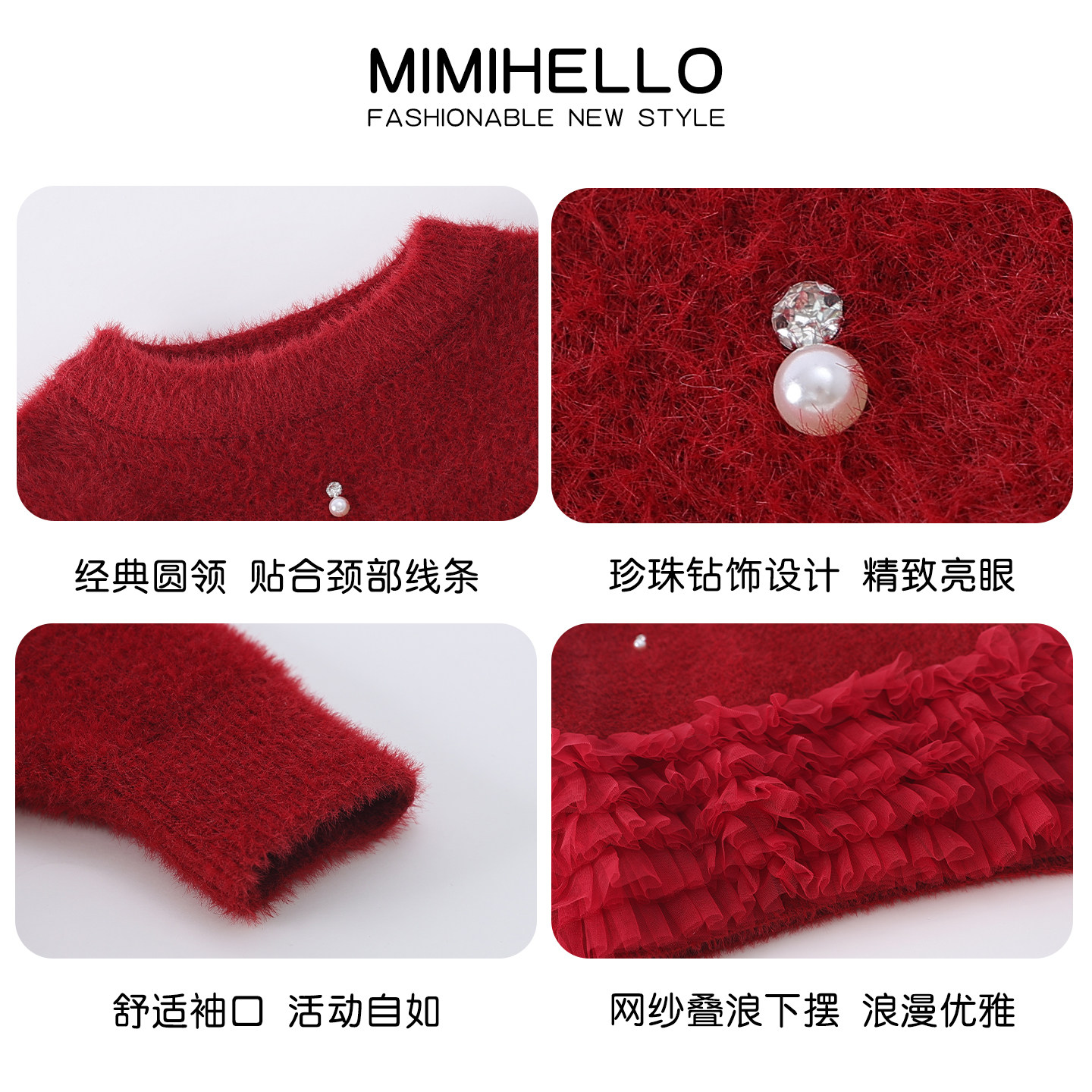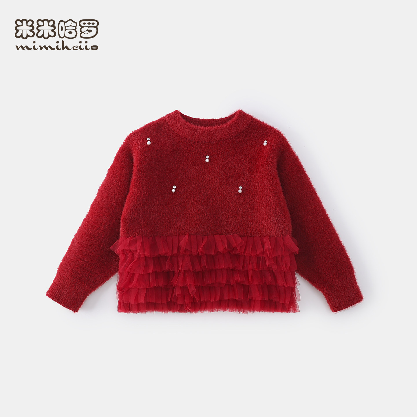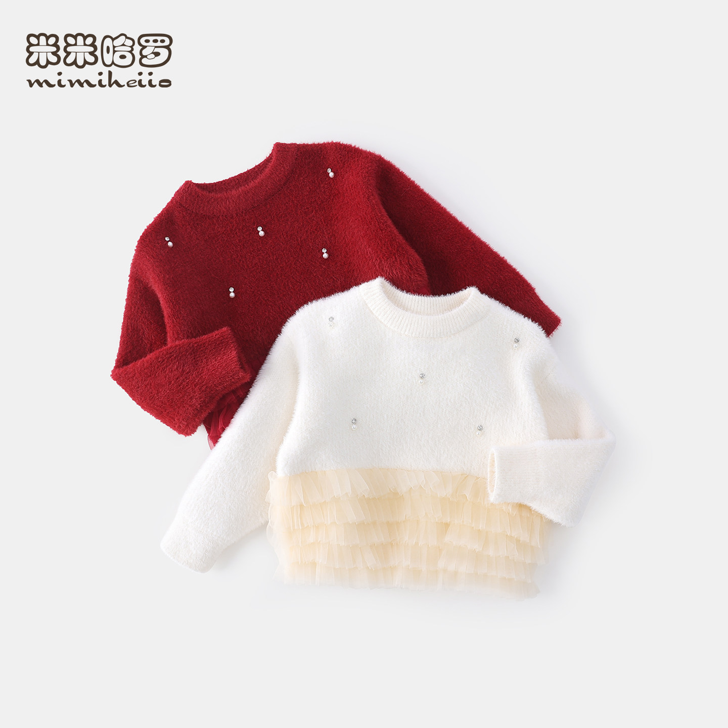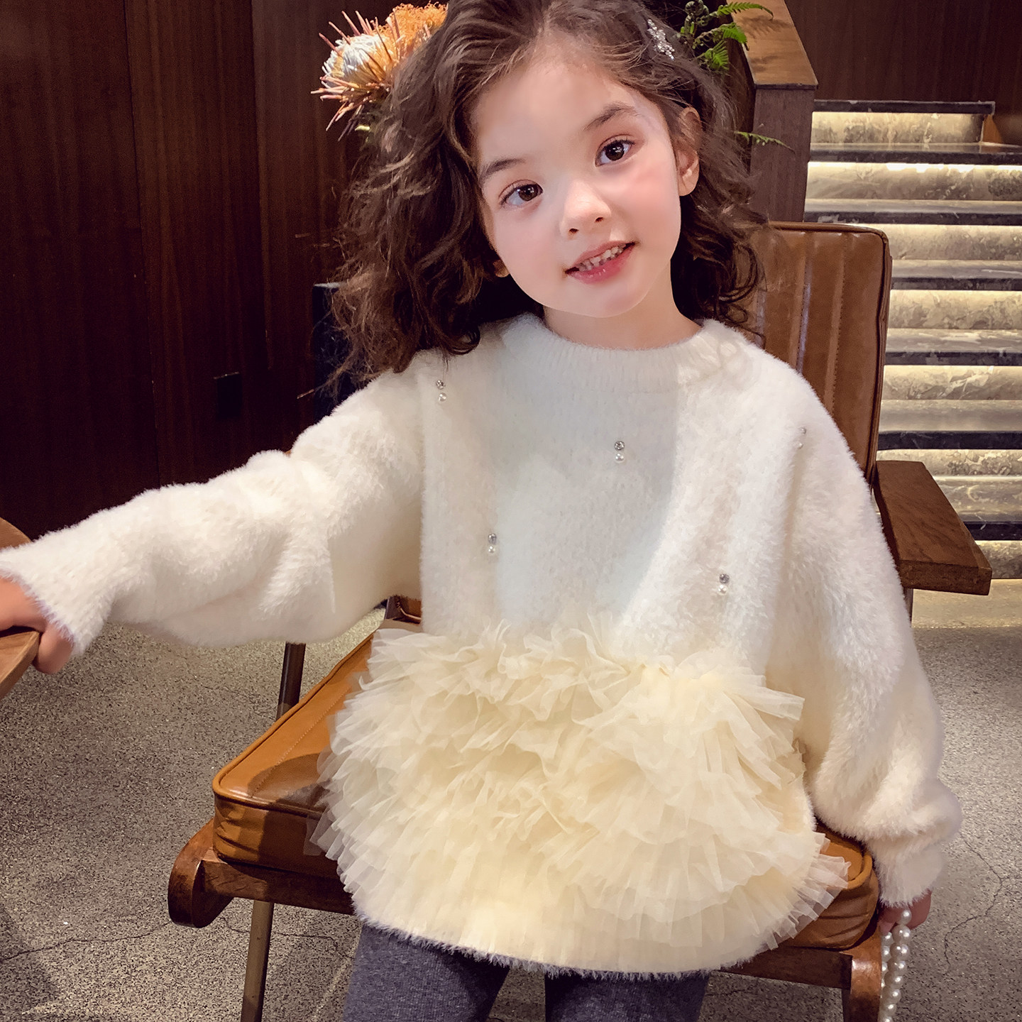女童仿水貂绒毛衣冬装2025新款休闲韩版女孩宽松加绒圆领儿童上衣