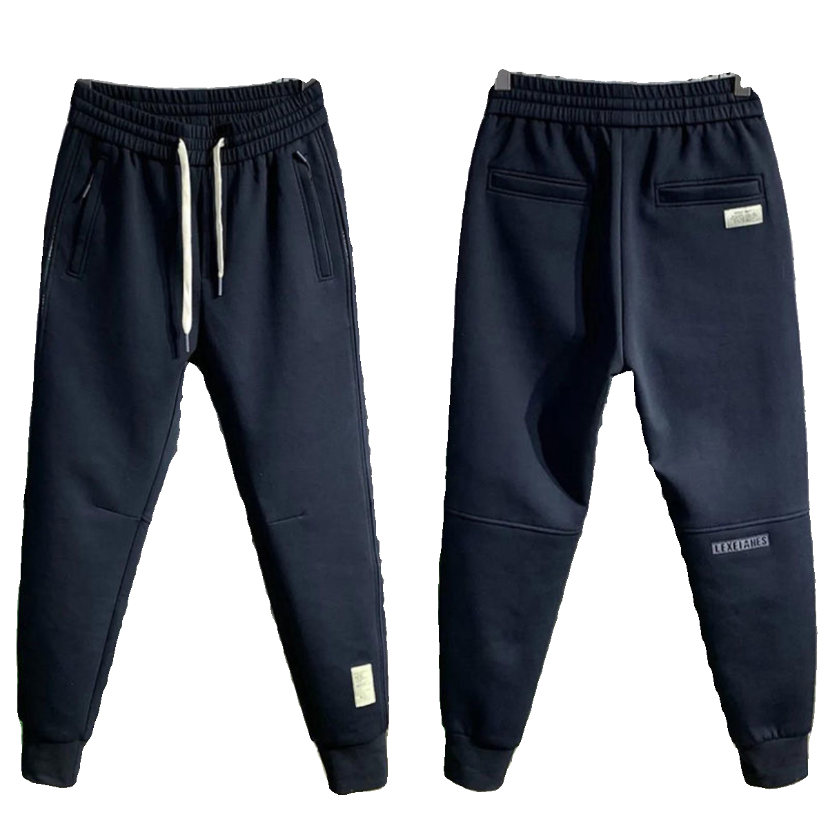 痞帅秋冬季新款男士加绒加厚卫裤网红潮流纯色束脚小脚休闲裤子男