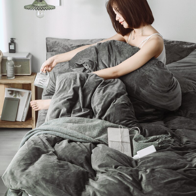 秋冬天鹅绒四件套加厚保暖珊瑚绒法莱短毛双面绒磨毛被套床单