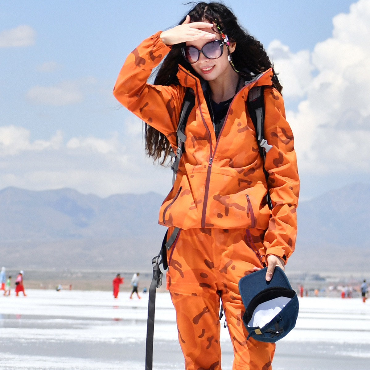 北京森林户外秋冬迷彩透气三层压胶硬壳防水登山冲锋衣裤套装女式