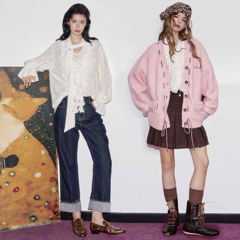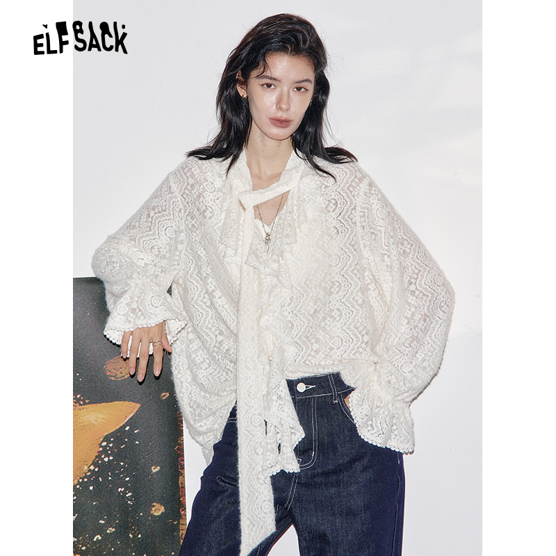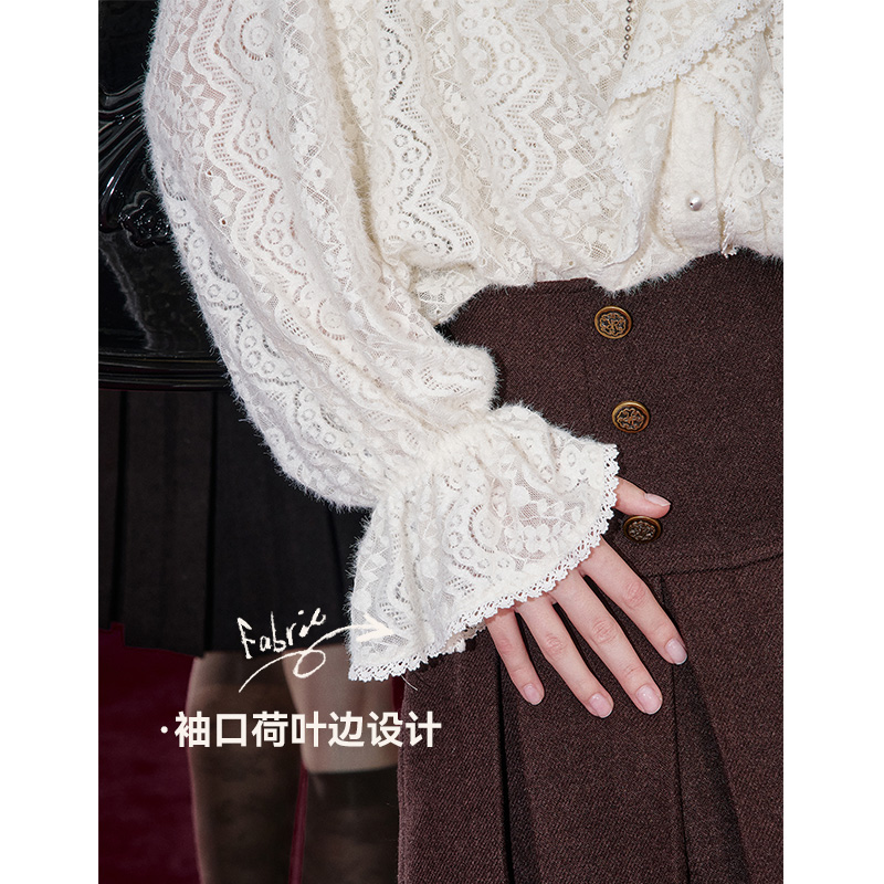 妖精的口袋法式荷叶边蕾丝衫女2025秋新款超好看可外穿内搭打底衫