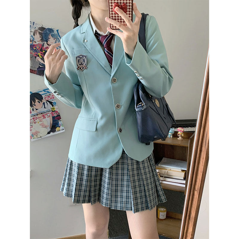 墨秋JK制服原创设计棠蕙女子薄荷绿小西装校供感西服外套上衣女