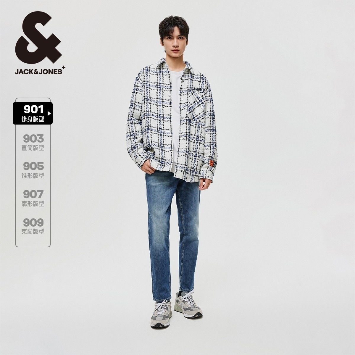 jq区绫致杰克琼斯春夏男牛仔裤时尚百搭纯色水洗猫须修身九分裤男