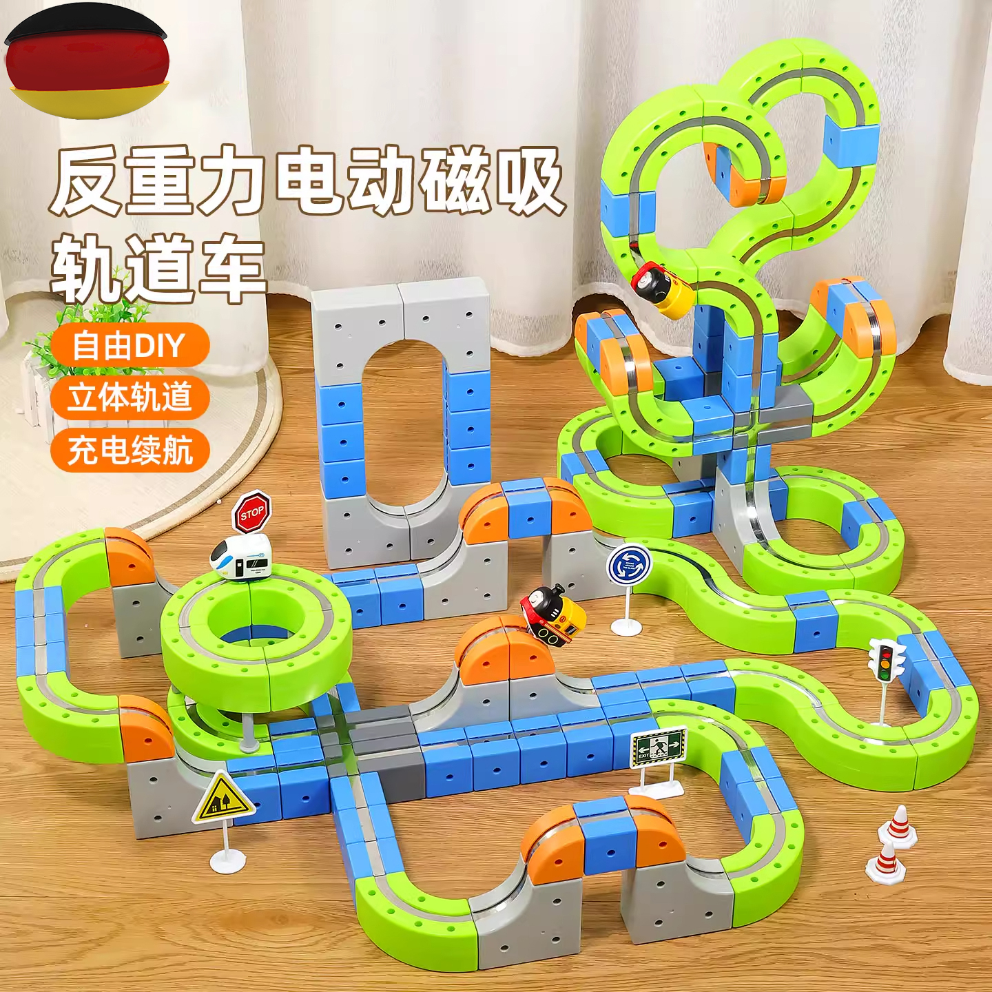 德国磁力积木轨道车益智拼装玩具