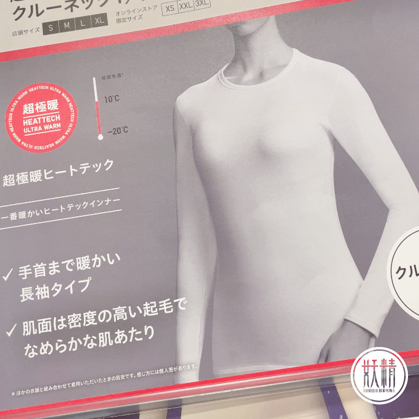 日本本土优衣库2.25倍超极暖Heattech自发热女款圆领长袖上衣