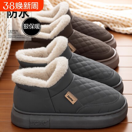 防水棉鞋男款冬季2025新款加绒加厚包跟棉拖鞋保暖外穿雪地靴男士