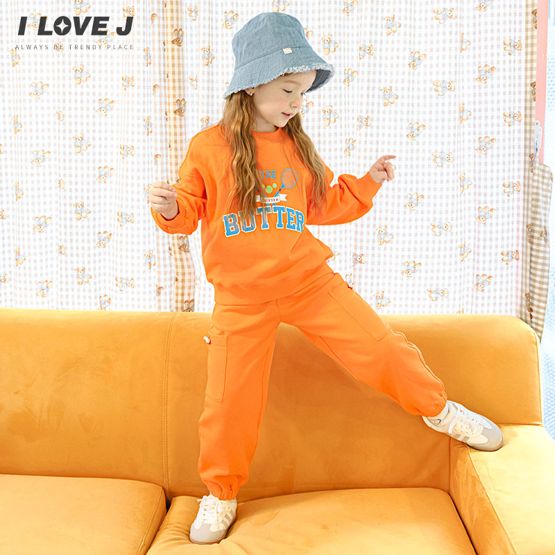ILOVEJ童装2026春季女童两件套装全棉休闲运动卫衣休闲裤/JWSSE21
