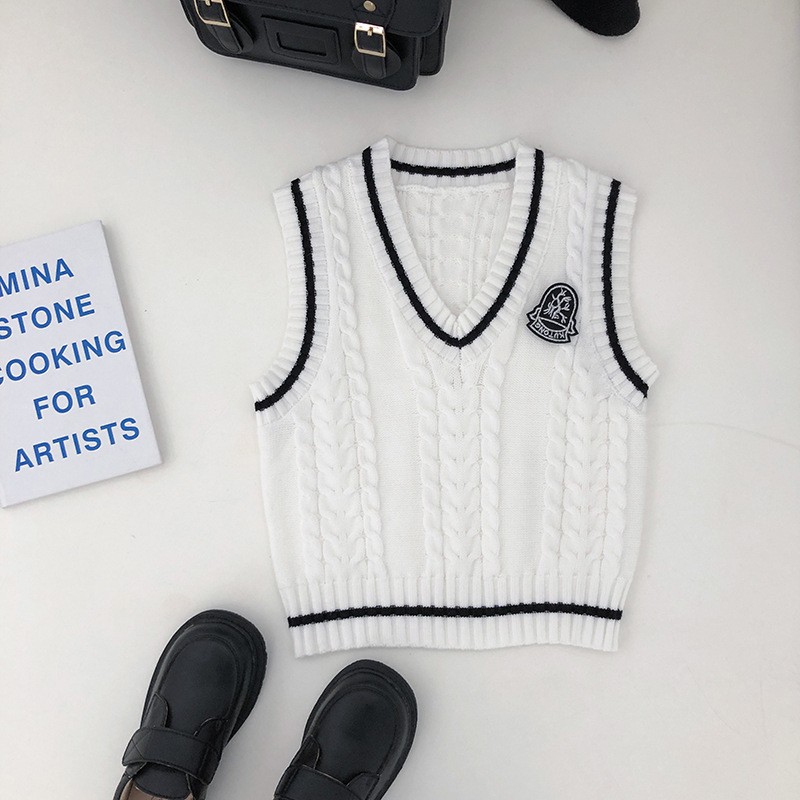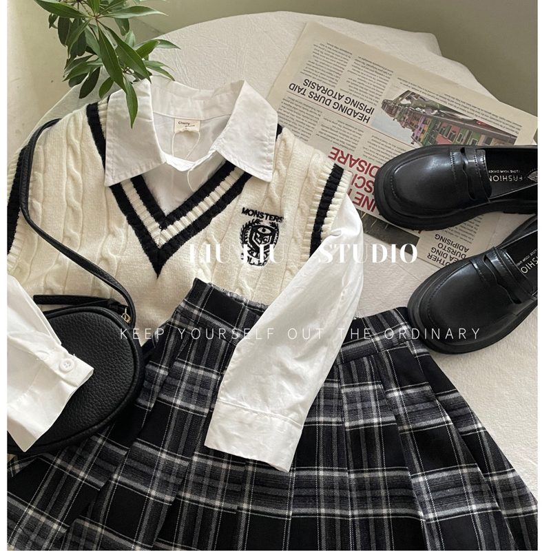女童学院风套装2024秋季新款儿童针织马甲衬衫格子百褶裙三件套潮