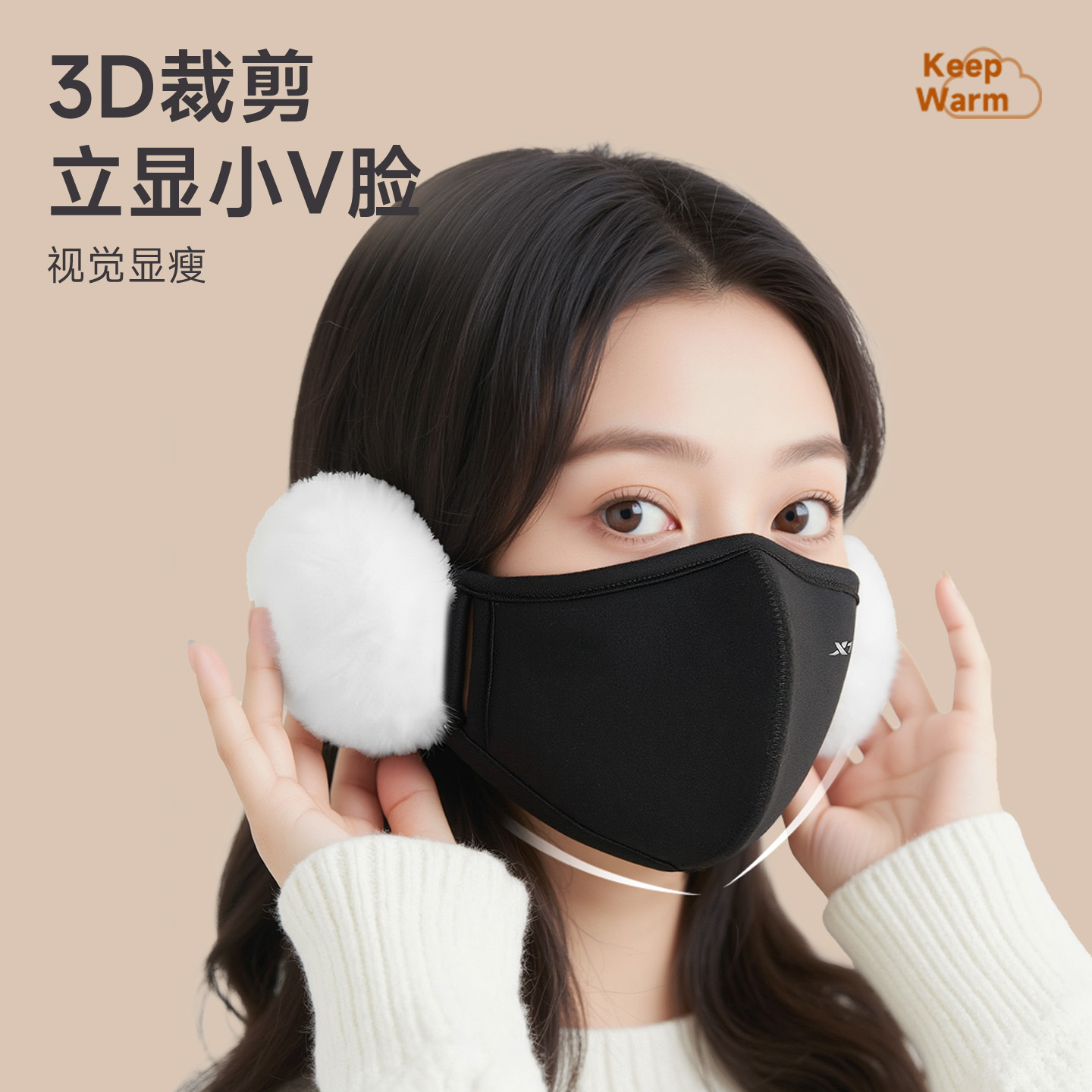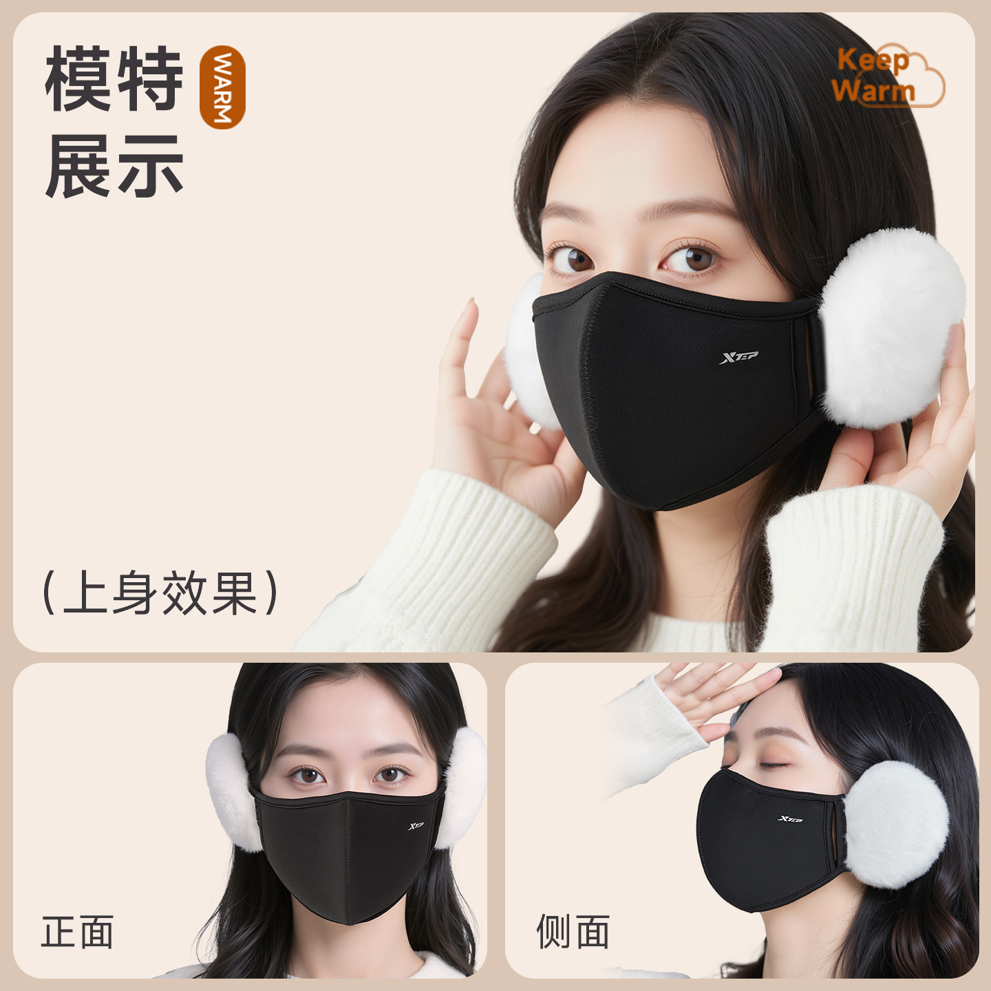 特步保暖口罩毛绒护耳男女秋冬高颜值外出骑行面罩防风寒防晒护脸