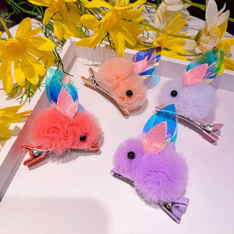 女童可爱立体网纱蓬蓬兔发夹玉兔头夹甜美小兔子发卡韩版宝宝头饰