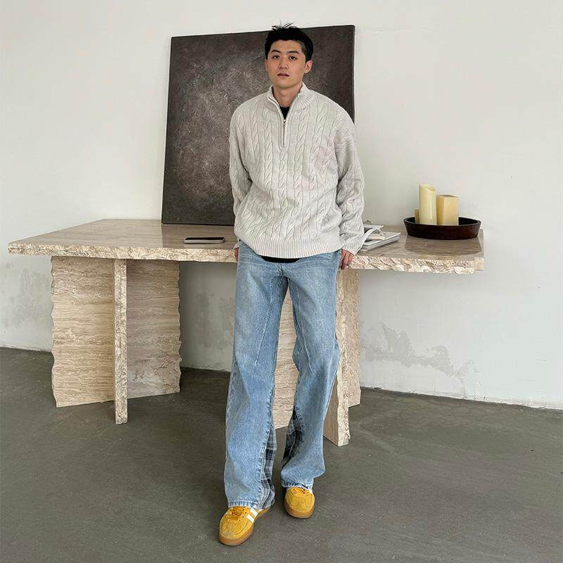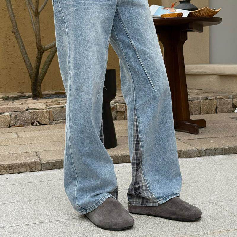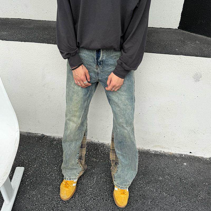 ZOZOFOREST【3155】“拼接喷马骝”水洗磨毛美式cleanfit牛仔裤