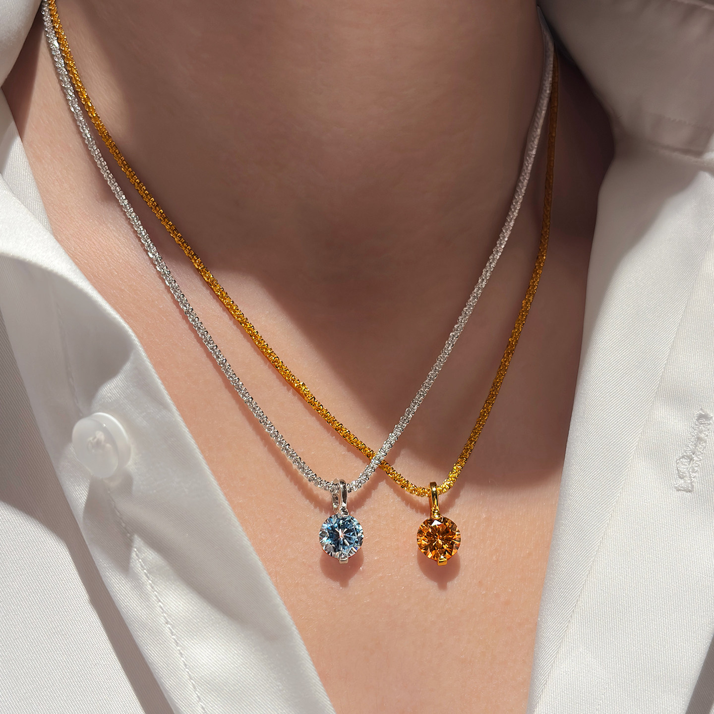 可拆卸DIY万能扣吊坠爆闪华子彩色钻石水晶毛衣项链女叠戴锁骨链