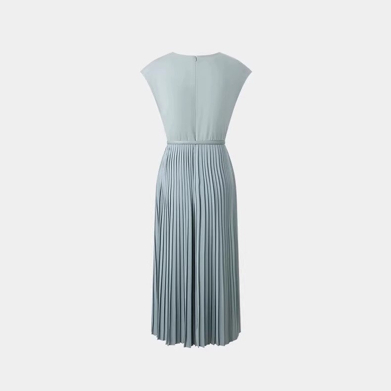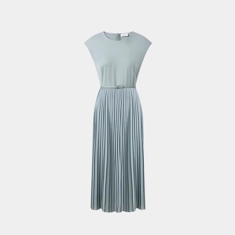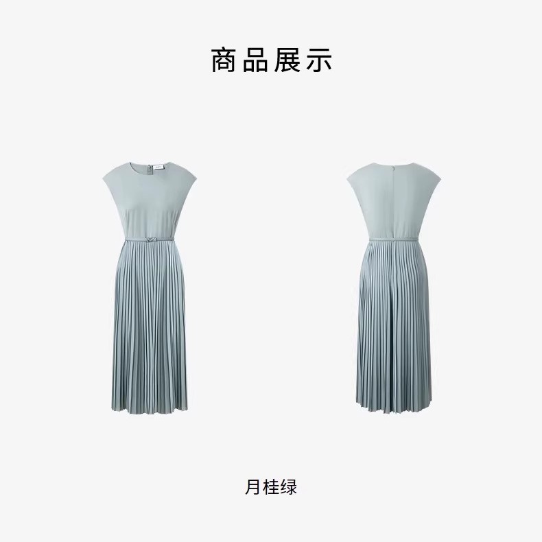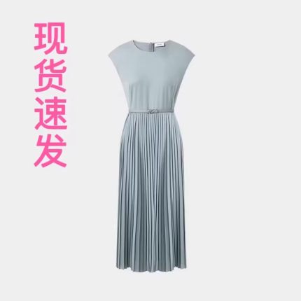 现货宝家女装2025夏季新款优雅淑女无袖收腰拼接百褶连衣裙