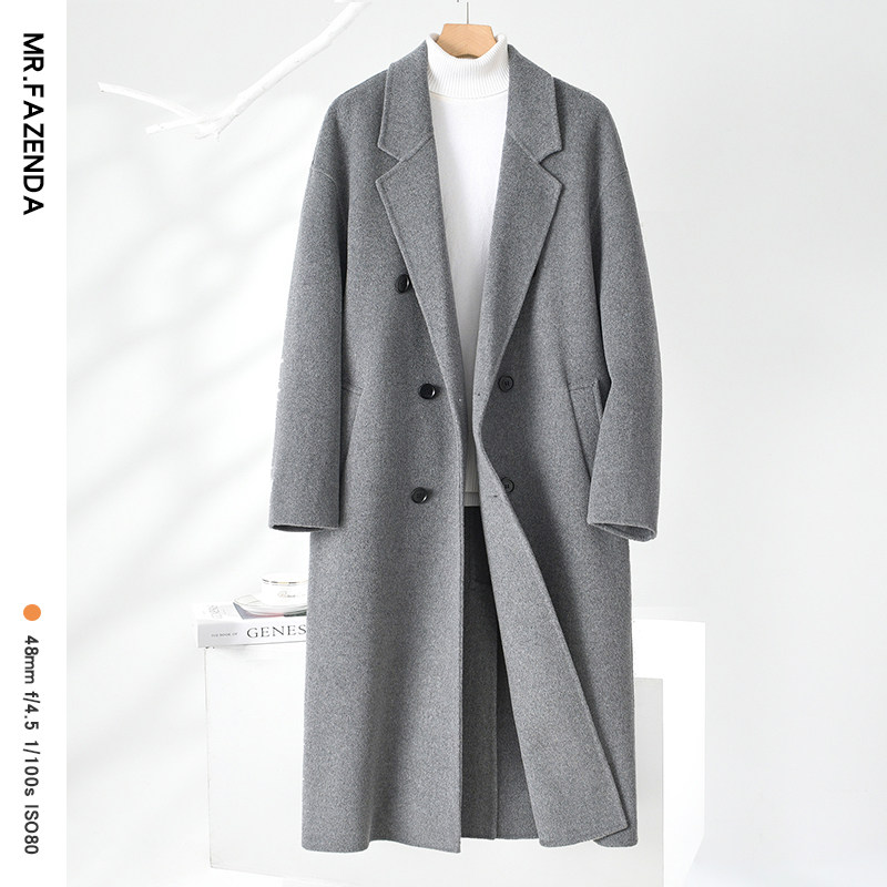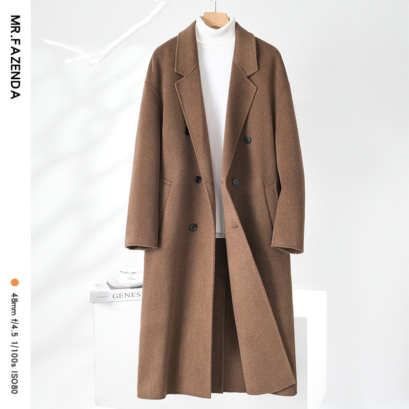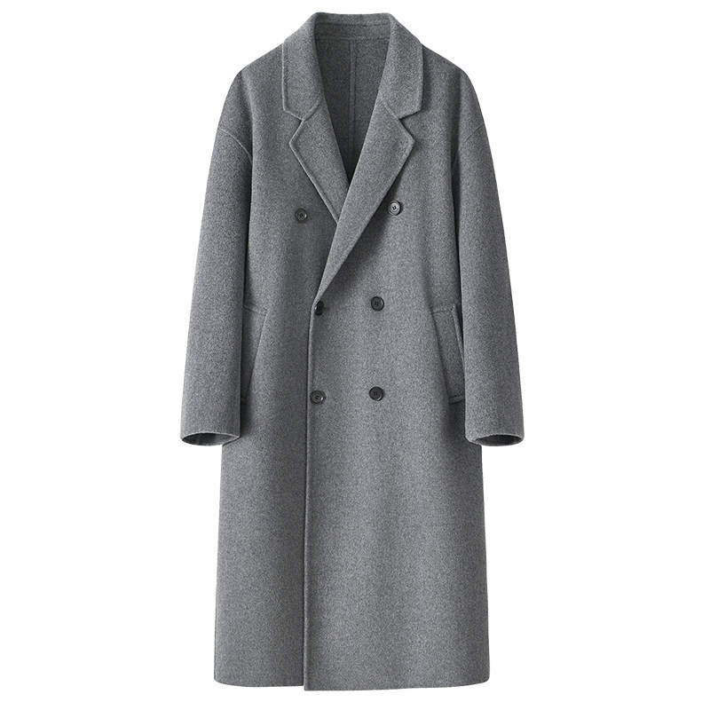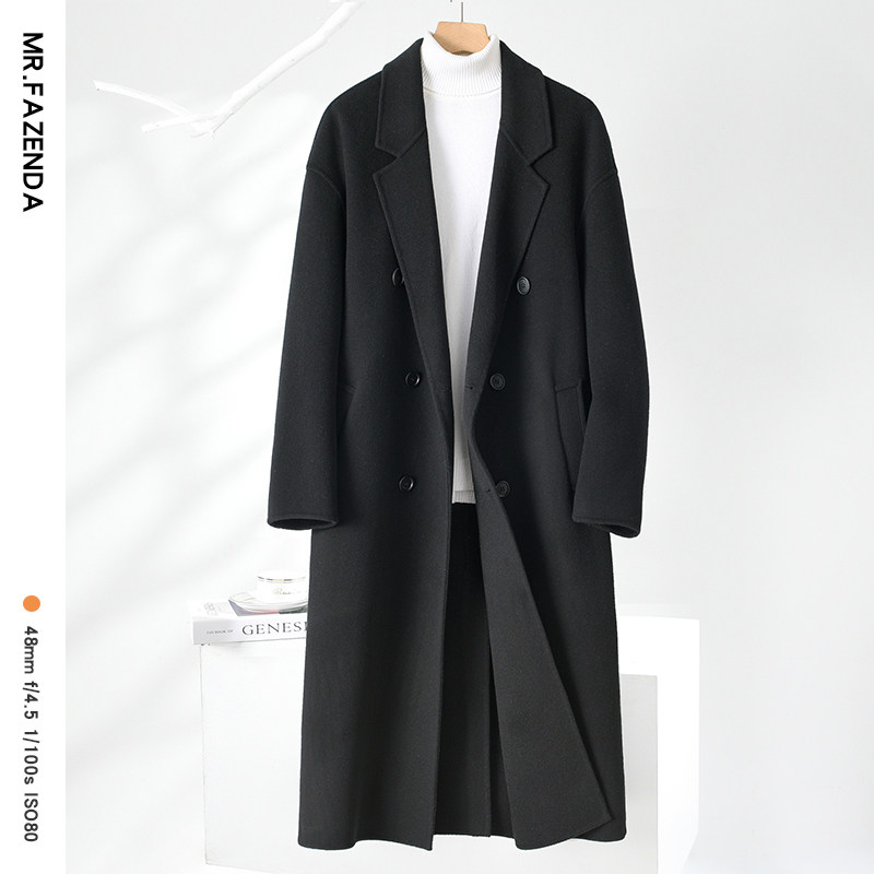 秋冬季长款双面绵羊绒大衣男韩版过膝宽松西装领羊毛呢子风衣外套