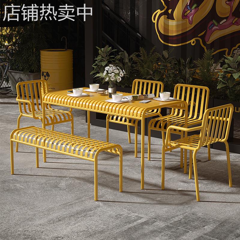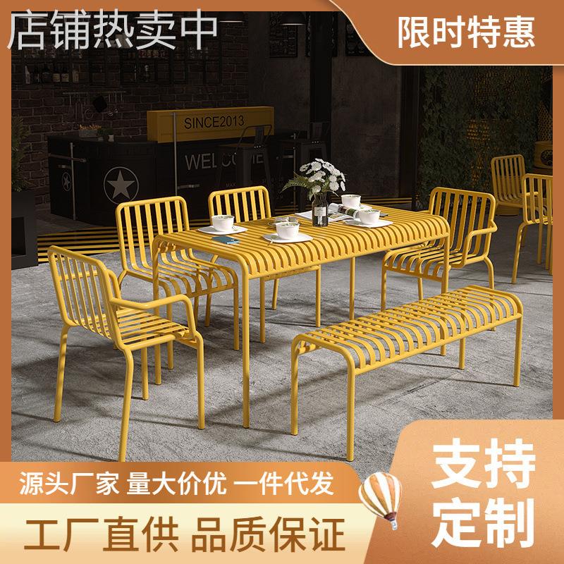 户外奶茶店桌椅组合 咖啡厅室外休闲餐桌椅工业风庭院路天台桌椅