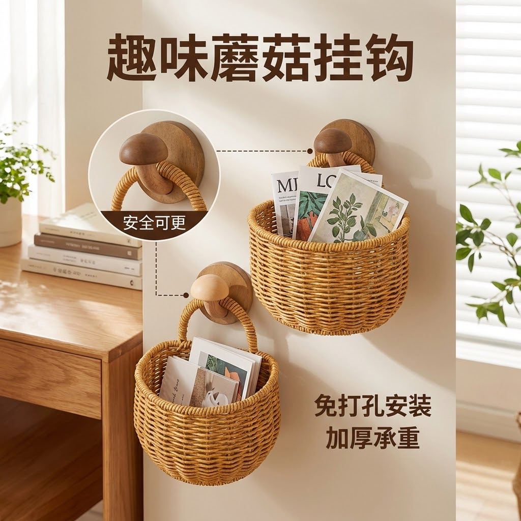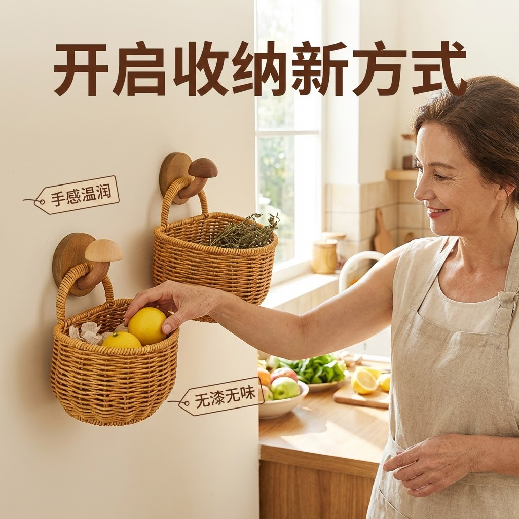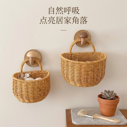 厨房葱姜蒜收纳筐壁挂仿藤编织篮复古手提小篮子水果篮花篮鸡蛋篮