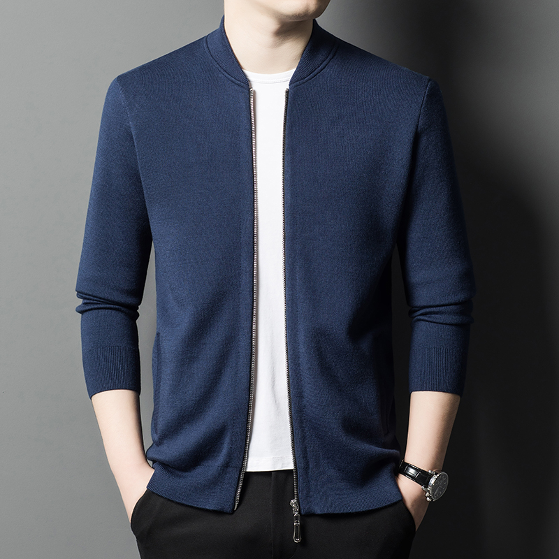 【四平加厚】巴素兰羊毛棒球领针织拉链外套带口袋开衫针织夹克