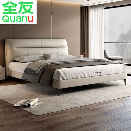 全友家居官网真皮床主卧高端大气1.8米双人床简约卧室软包2025新