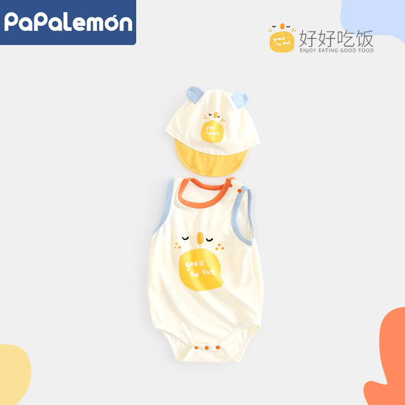 柠檬爬爬婴儿夏季纯棉背心包屁衣