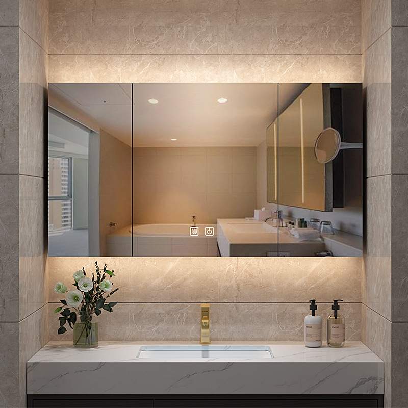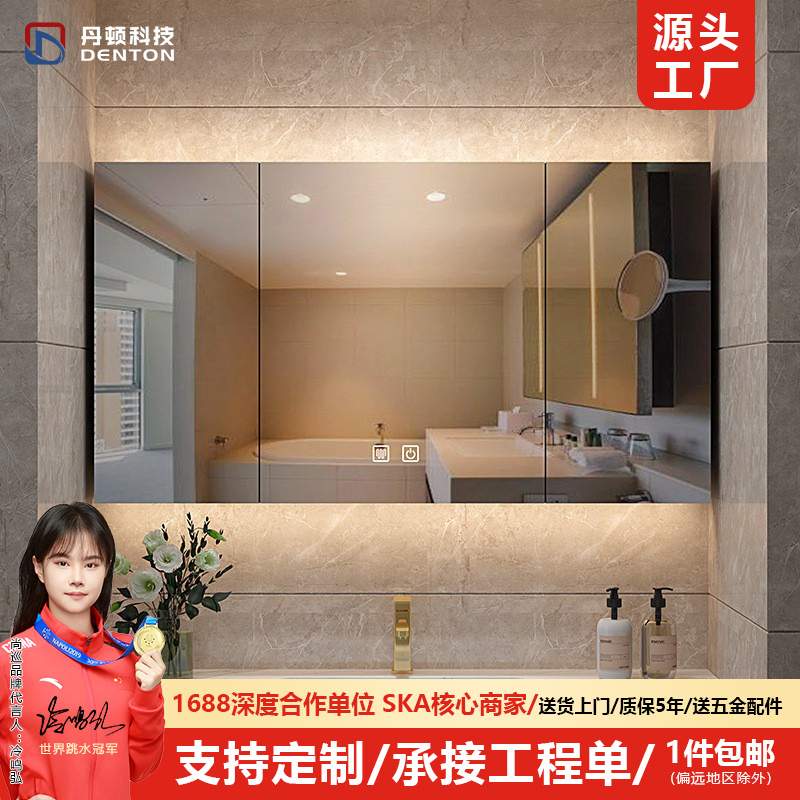 浴室智能镜柜单独挂墙式收纳一体柜卫生间洗漱镜实木带置物架带灯