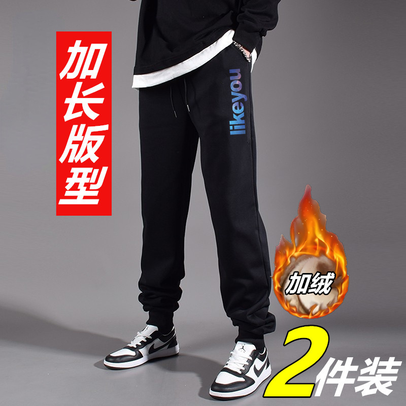 190加长版高个子裤子男款秋冬季加绒运动裤休闲裤青少年束脚卫裤