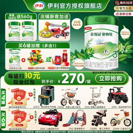 伊利金领冠塞纳牧有机3段1-3岁婴幼儿牛奶粉三段800g*1罐