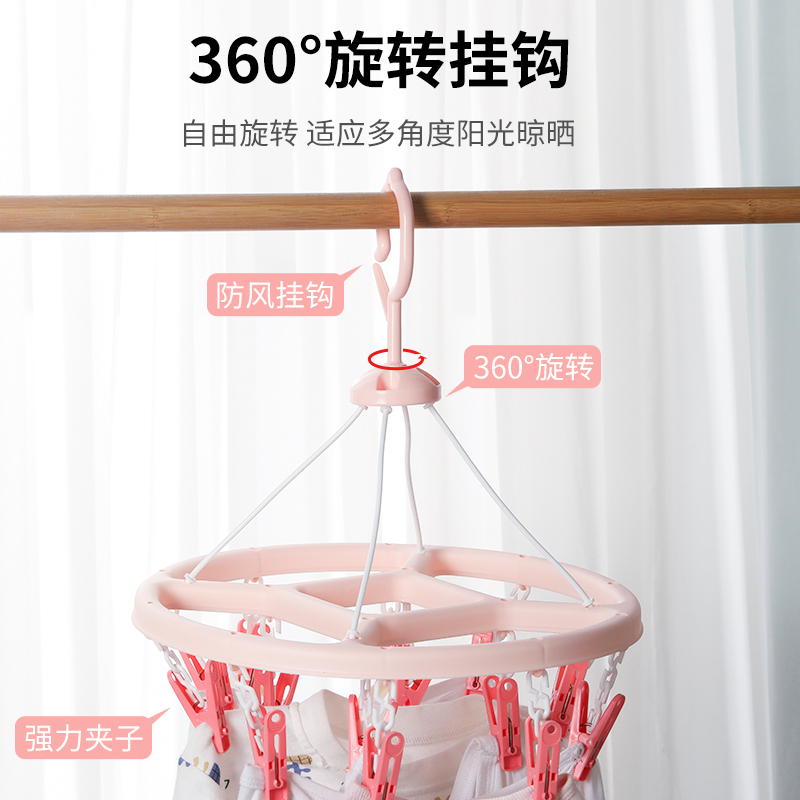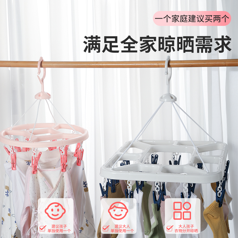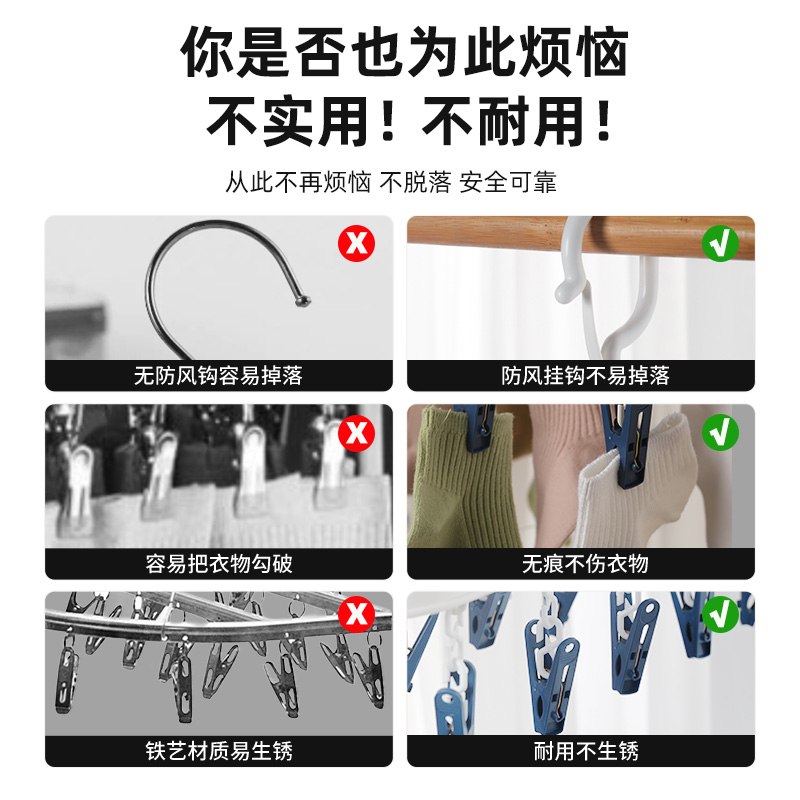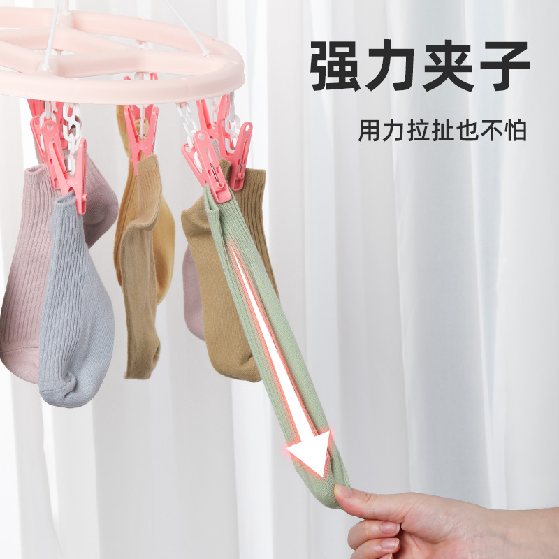 茶花圆盘晾衣架多夹子晒袜子晾衣工具家用阳台挂内衣收纳神器夹子