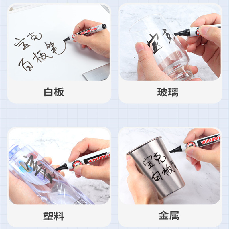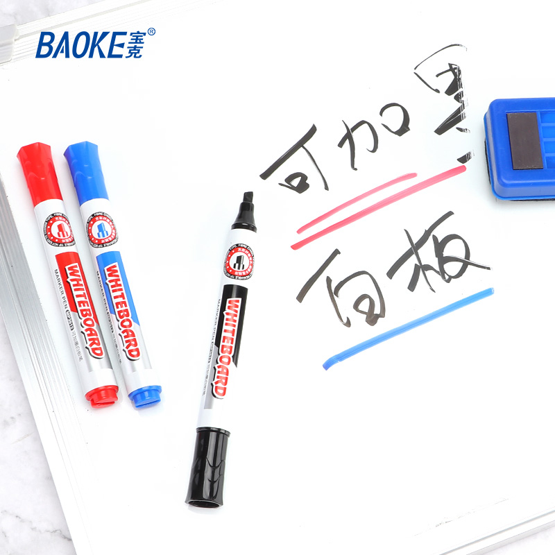 宝克可加墨大容量白板笔黑色水性可擦记号儿童黑板画板写字板扁头方头斜头彩色笔易擦除蓝红色墨水教师培训用