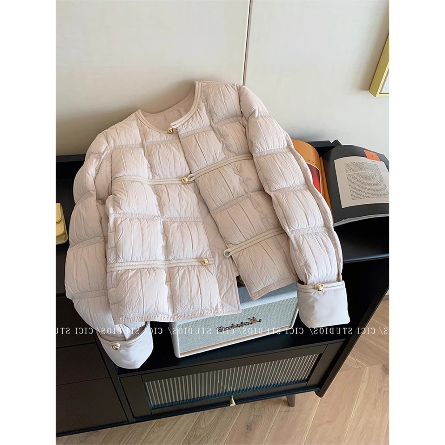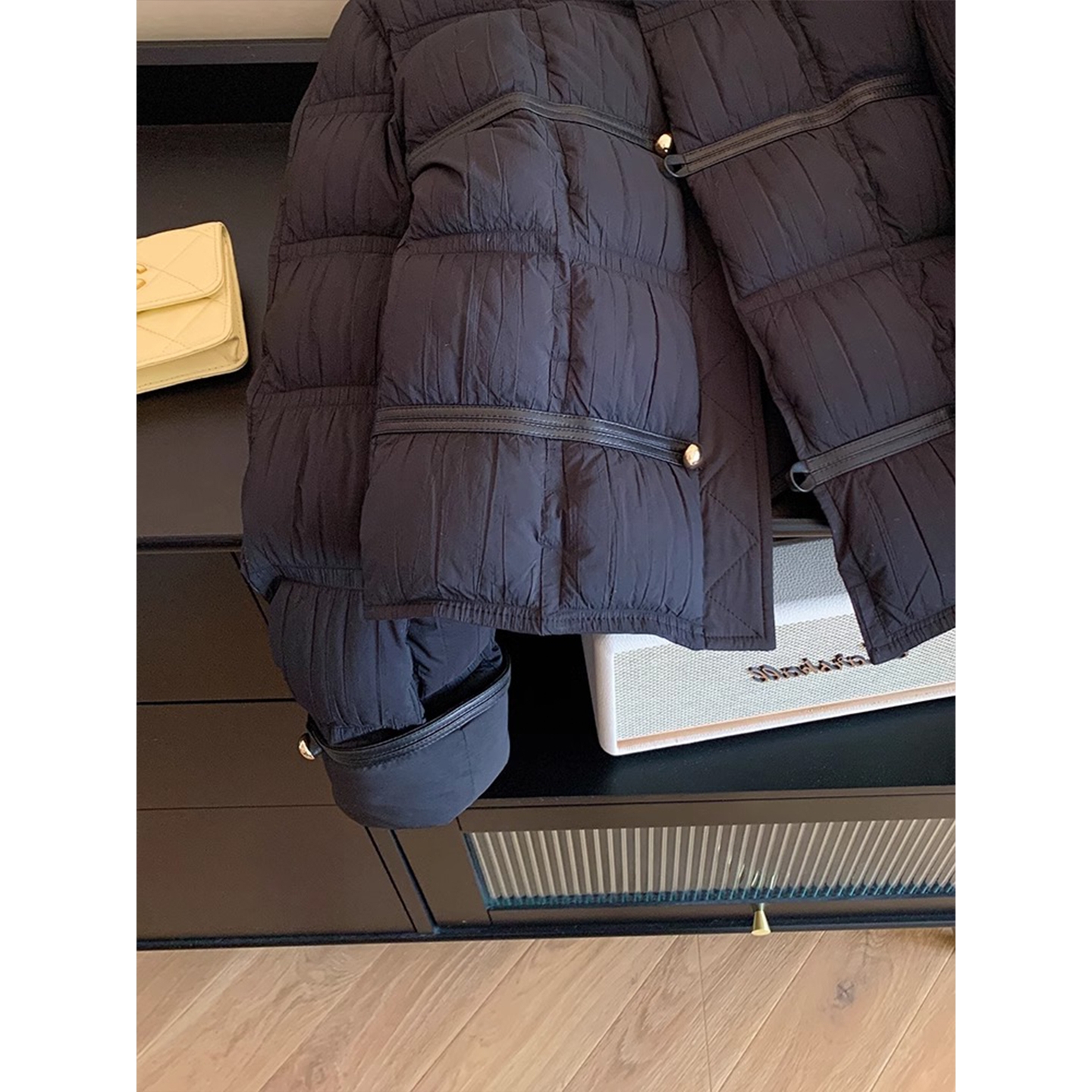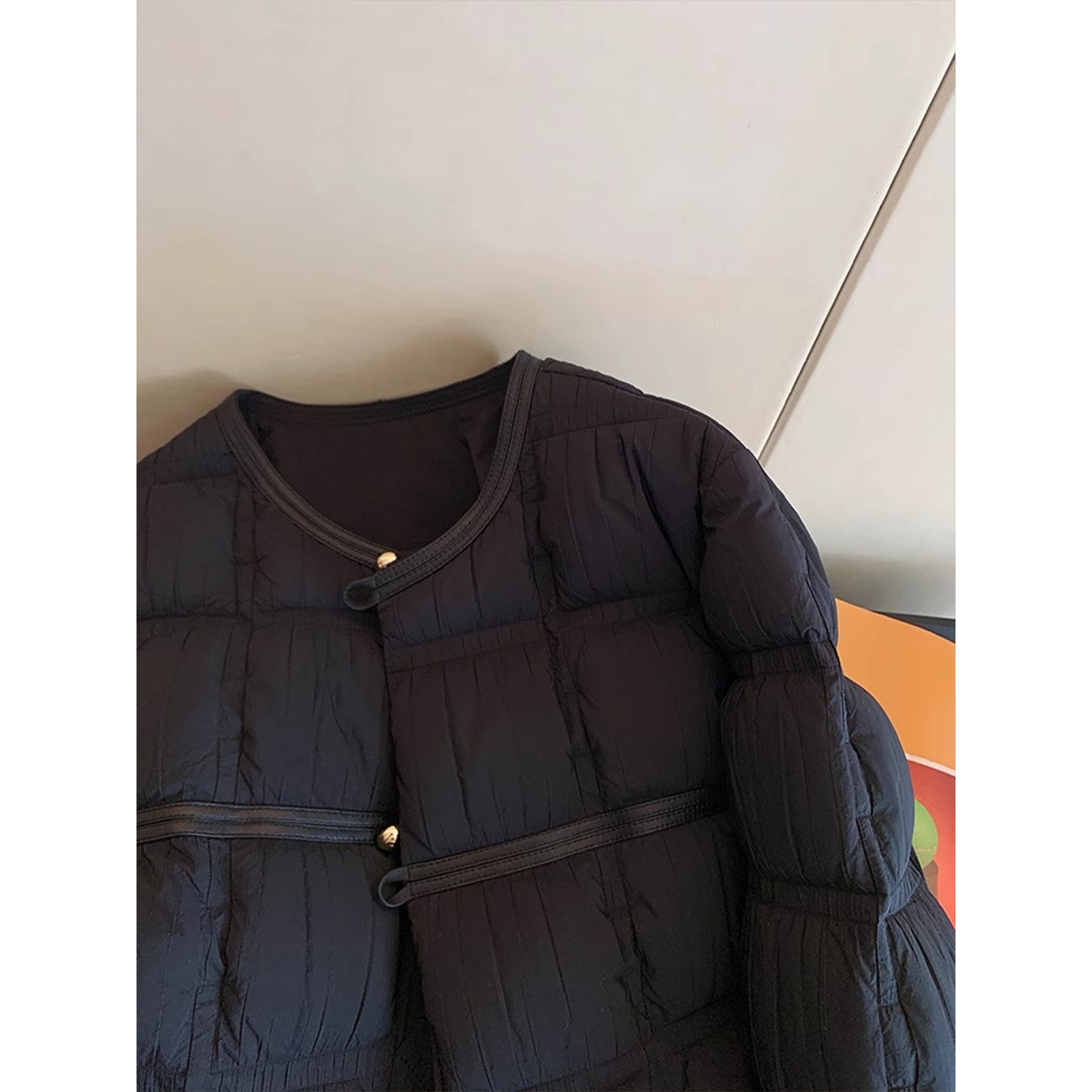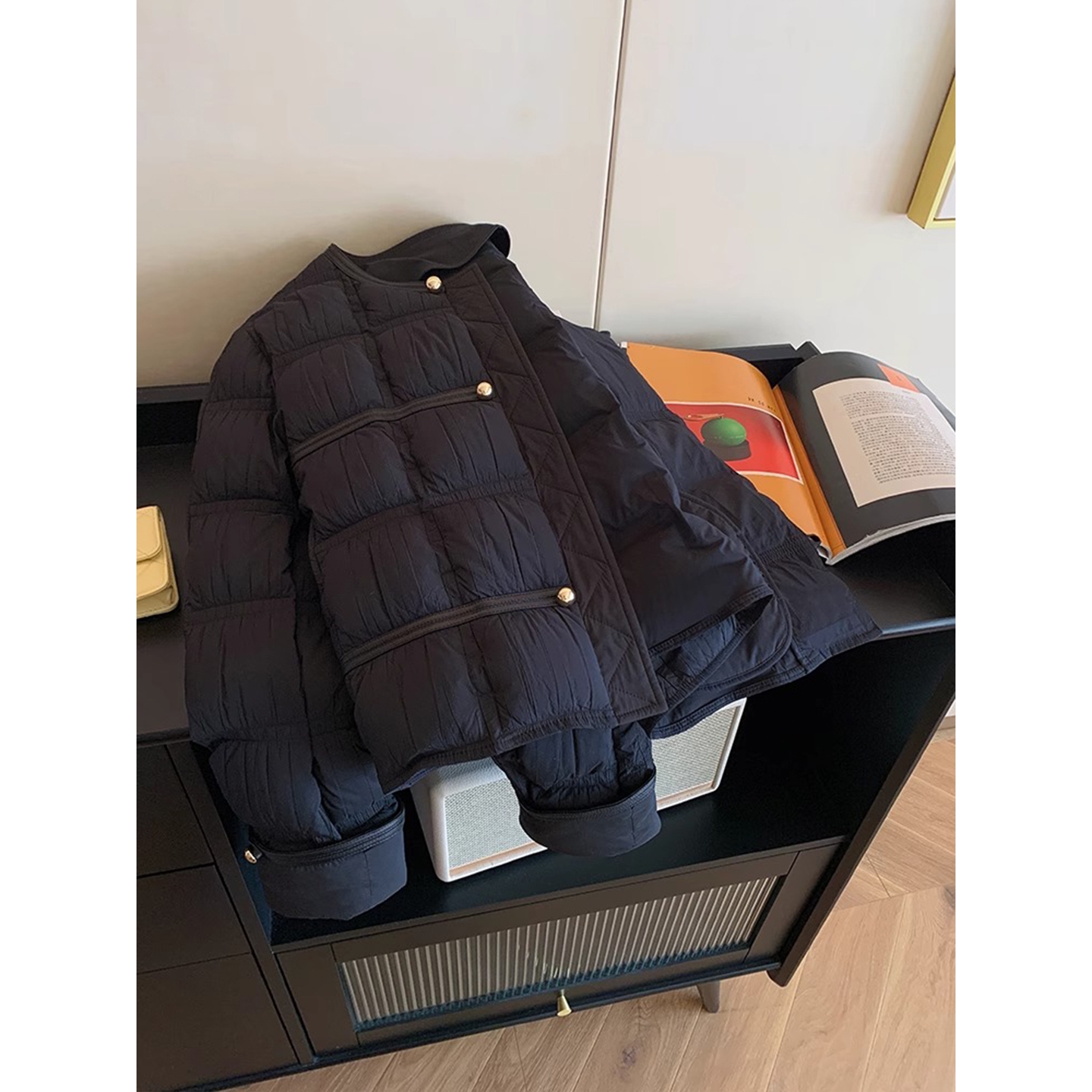 高级设计感黑色羽绒棉服女冬季大码胖mm气质好看百搭圆领棉衣外套