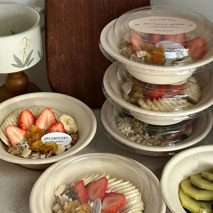 一次性酸奶碗希腊冷萃酸奶草帽碗沙浴缸甜品沙拉打包纸浆碗
