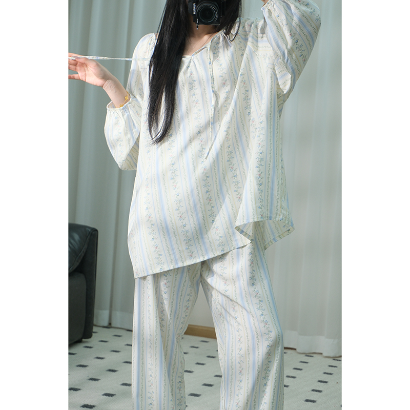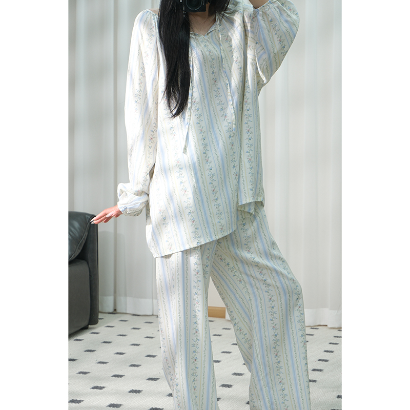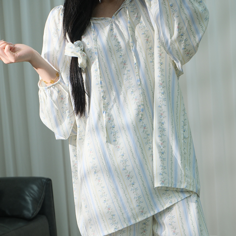 2025新款春夏季棉绸睡衣女小清新碎花新中式国风娃娃领家居服套装