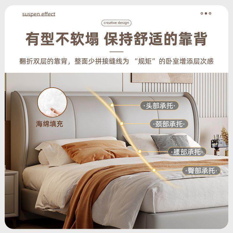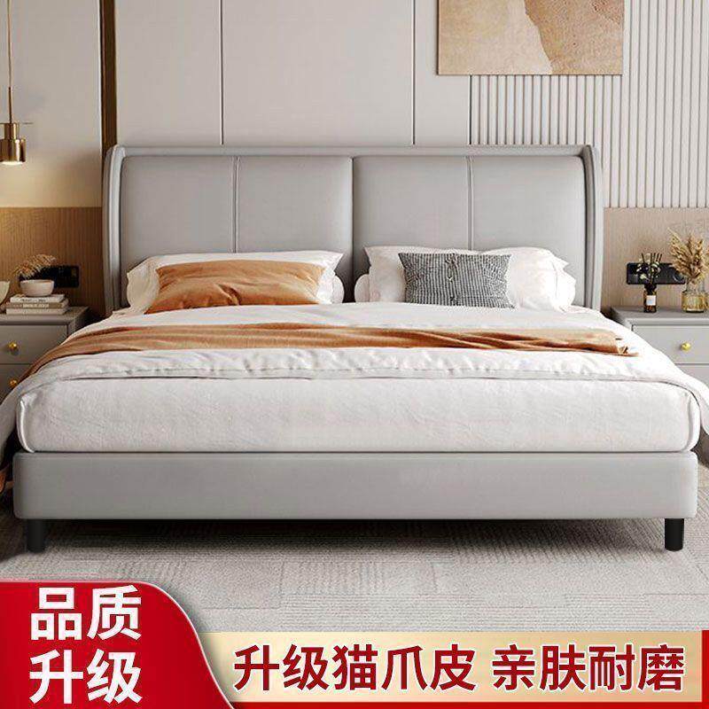 意式双人床主卧大床2米1.8轻奢猫爪皮床婚床现代简约小户型1.2米