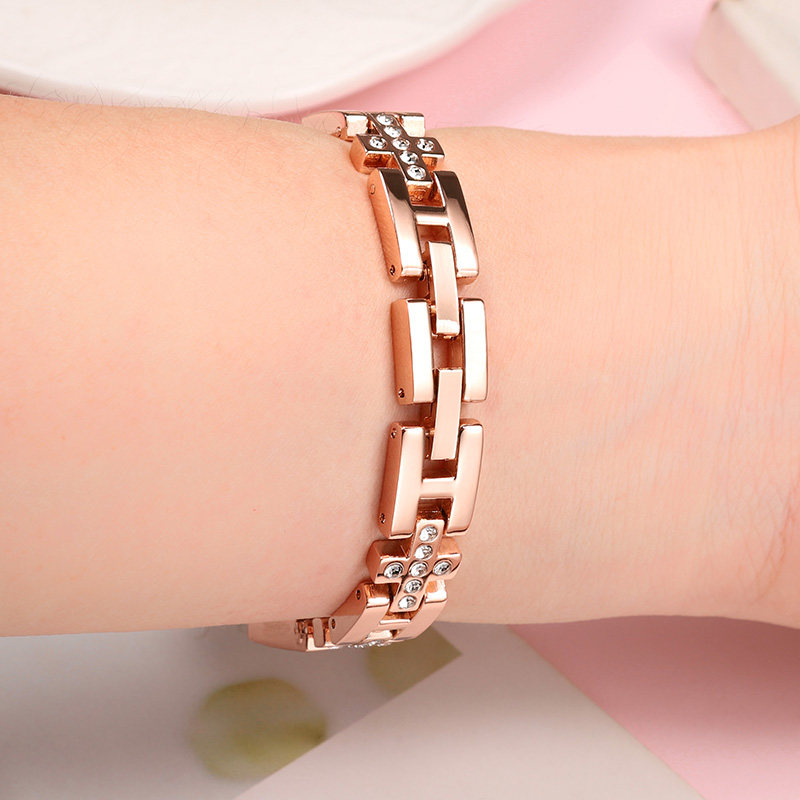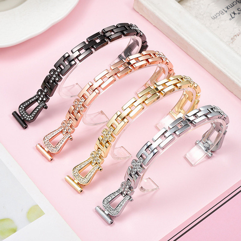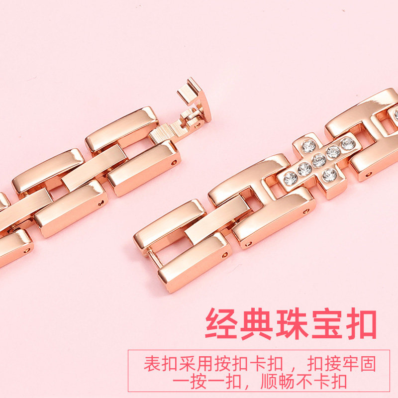 适配天梭1853手表带钢带女卡森力洛克梦媛T085 T41镶钻钢表链14mm