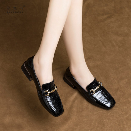 2025新款漆皮女鞋软皮方头单鞋乐福鞋女平底英伦风真皮小皮鞋春秋