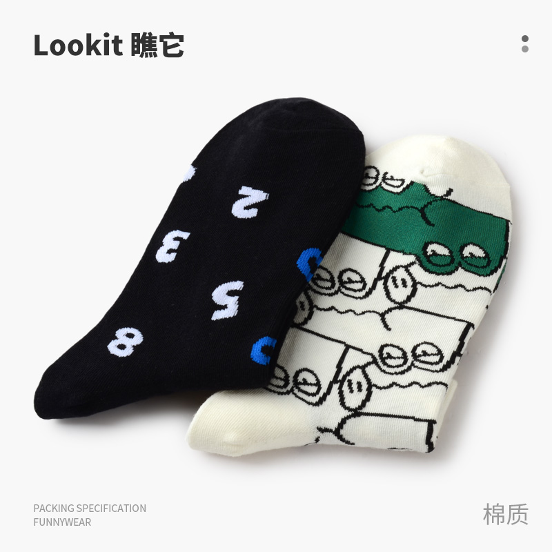 男女春秋短袜卡通字母情侣中短筒袜子男ins潮街头低帮运动风棉袜