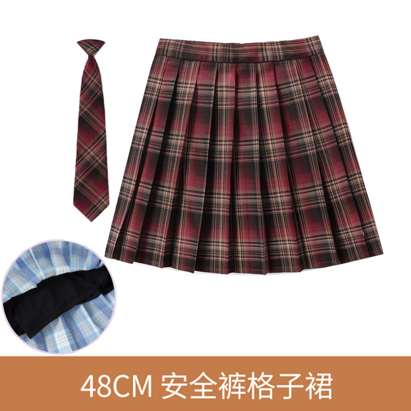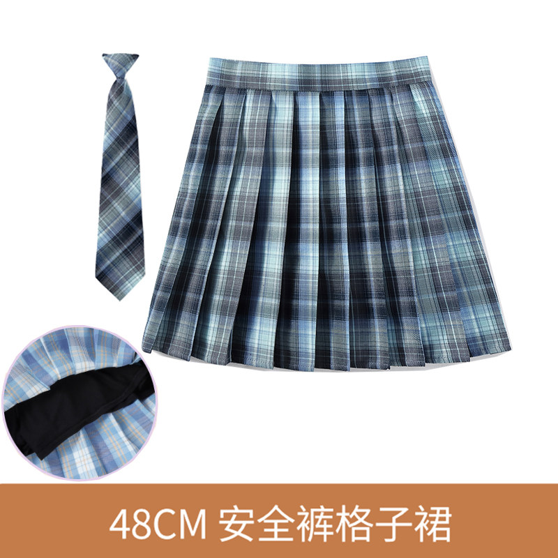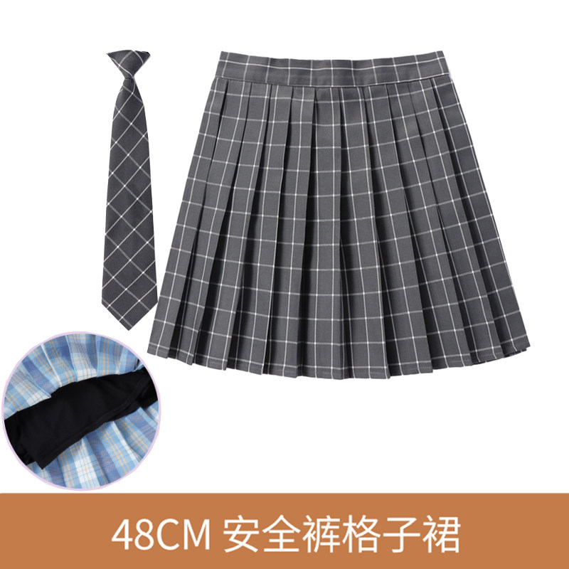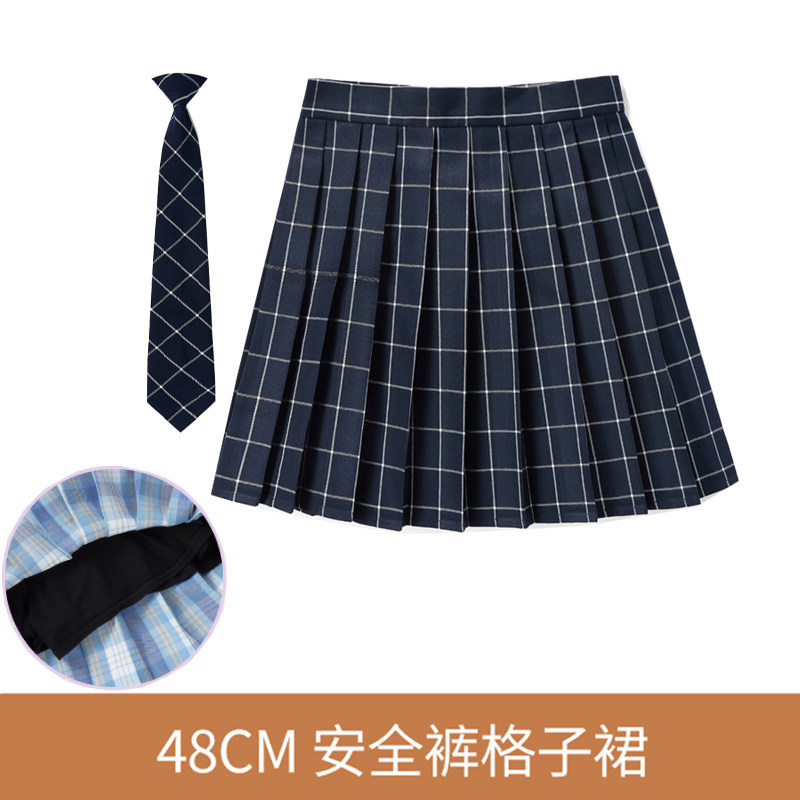 48CM安全裤裙+领带]英伦学院半身百折学生百褶少女高腰班服制服裙