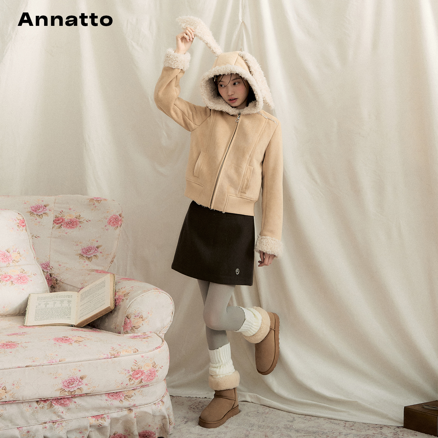 ANNATTO兔耳朵皮毛一体外套女