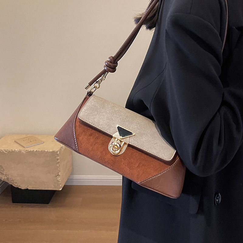 小众撞色拼接包包女2023新款流行爆款百搭斜挎包单肩腋下包法棍包