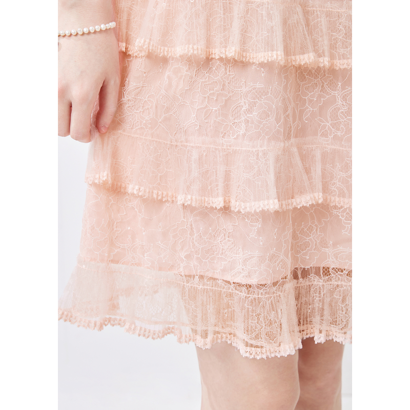 missCOCOON时尚裙子2023夏新女法式梦幻浪漫层叠式裙摆圆领连衣裙