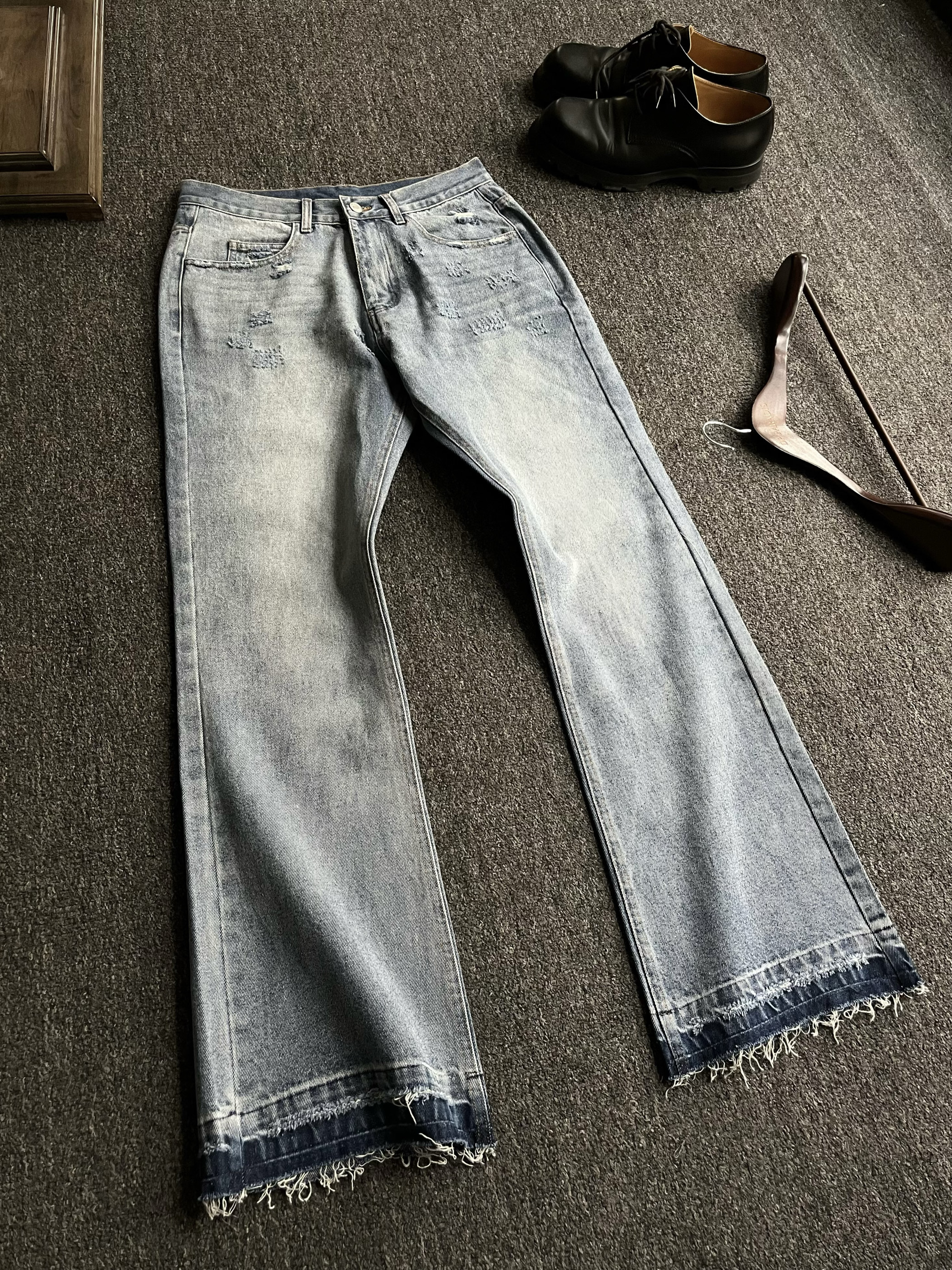 BUFANSTUDIO自主做旧磨破ce风VINTAGE水洗小众微喇牛仔裤23秋517
