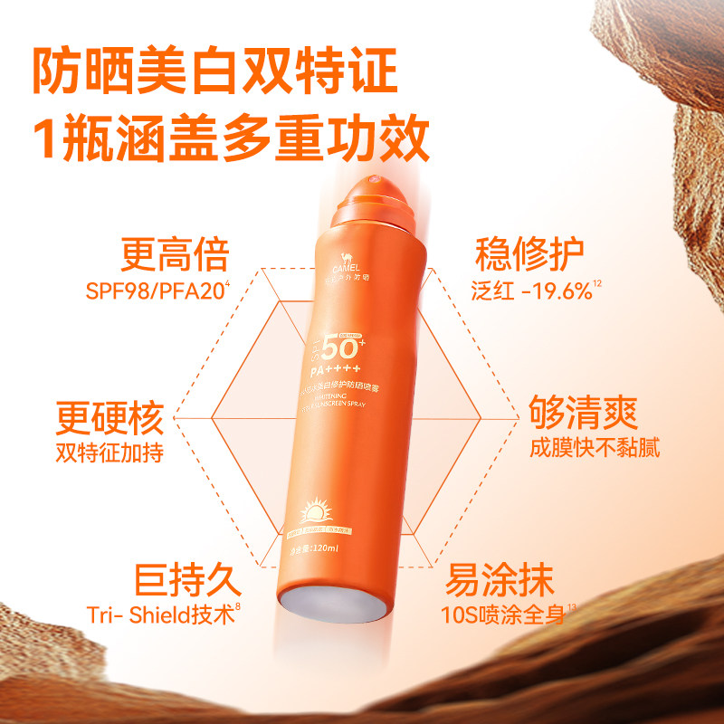 骆驼美白防晒喷雾户外运动50倍防紫外线防水防汗全身通用防晒霜