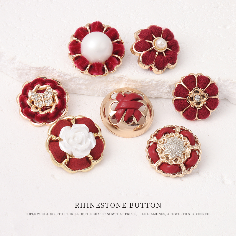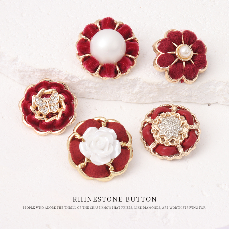 安哥拉红金属镶钻珍珠穿绳扣子女上衣皮草大衣风衣毛衣小香风钮扣